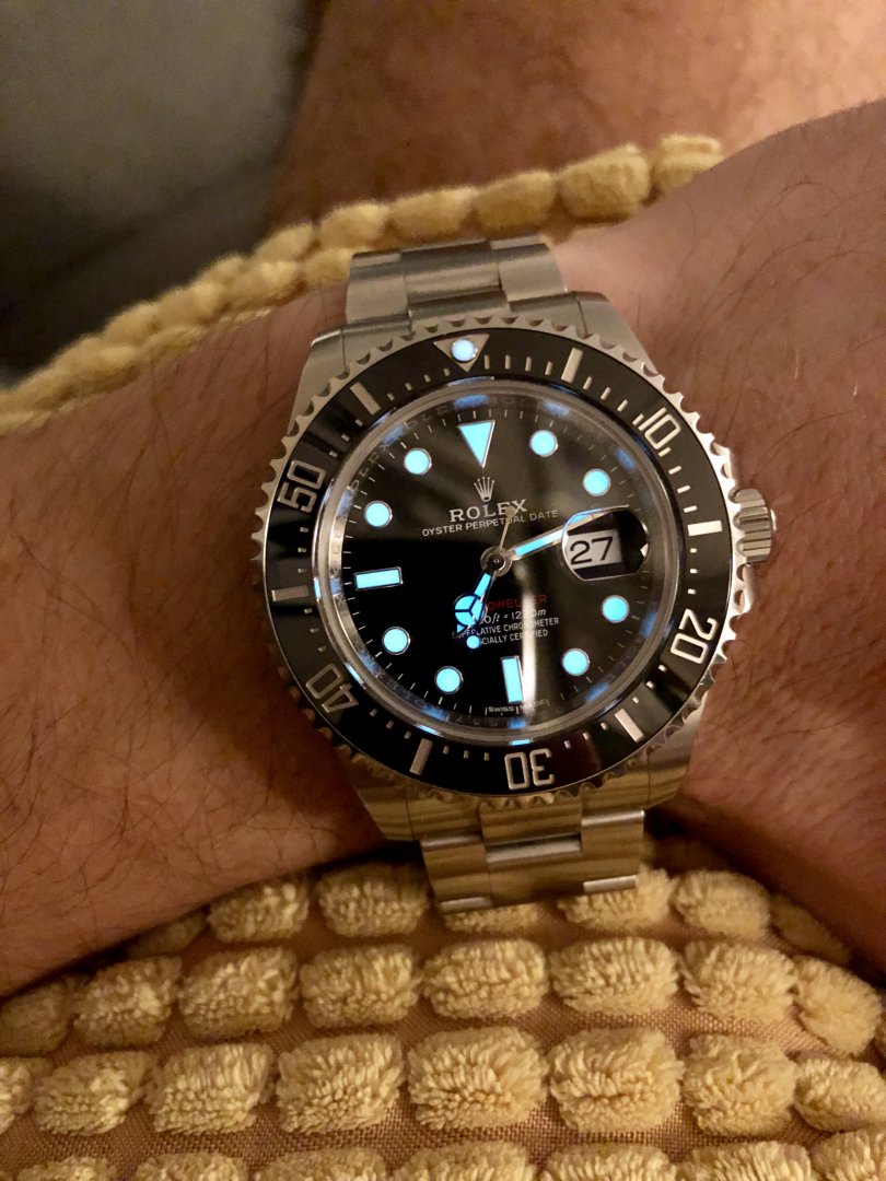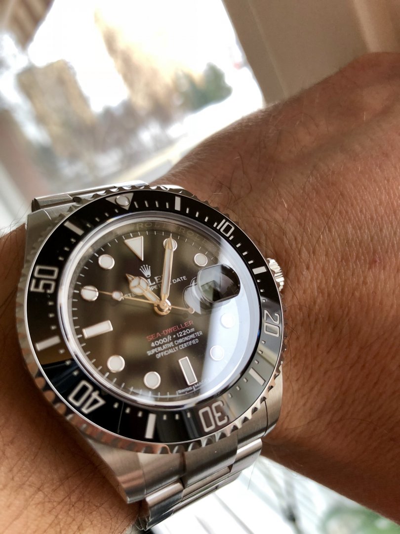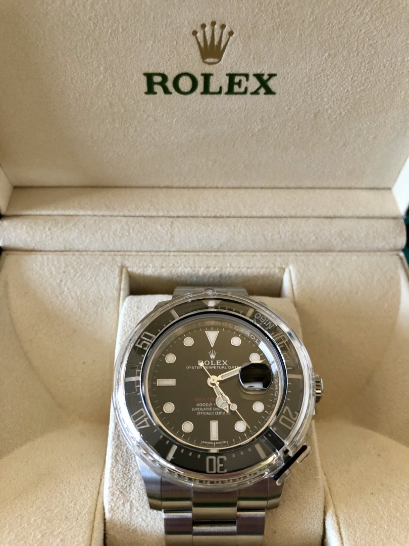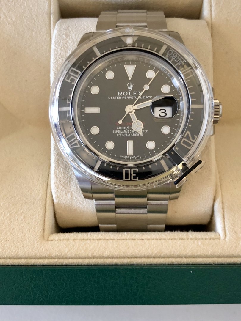 Spesifikasjoner, beskrivelse og tilstand: De som ønsker denne klokken vet nok hva det dreier seg om. Den nye Sea-Dwelleren fra fjorårets Basel-messe med referansenummer 126600. Klokken min er HELT strøken. Jeg vil gi den 9,9 av 10. Jeg kjøpte den i november 2017, klokken er originalt kjøpt i september 2017. I mitt eie har den bodd mye i winder, ikke brukt på jobb eller ferie for å nevne noe. Den eneste grunnen til salg er at jeg har en Submariner i bestilling som jeg tror begynner å nærme seg levering.