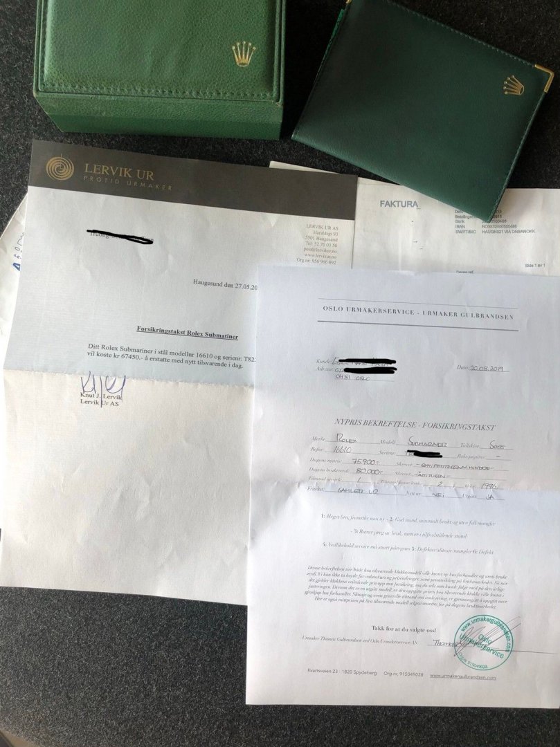▪ 2015: Klokken var på service hos Lervik Ur og det ble utsted servicegaranti og forsikringstakst.