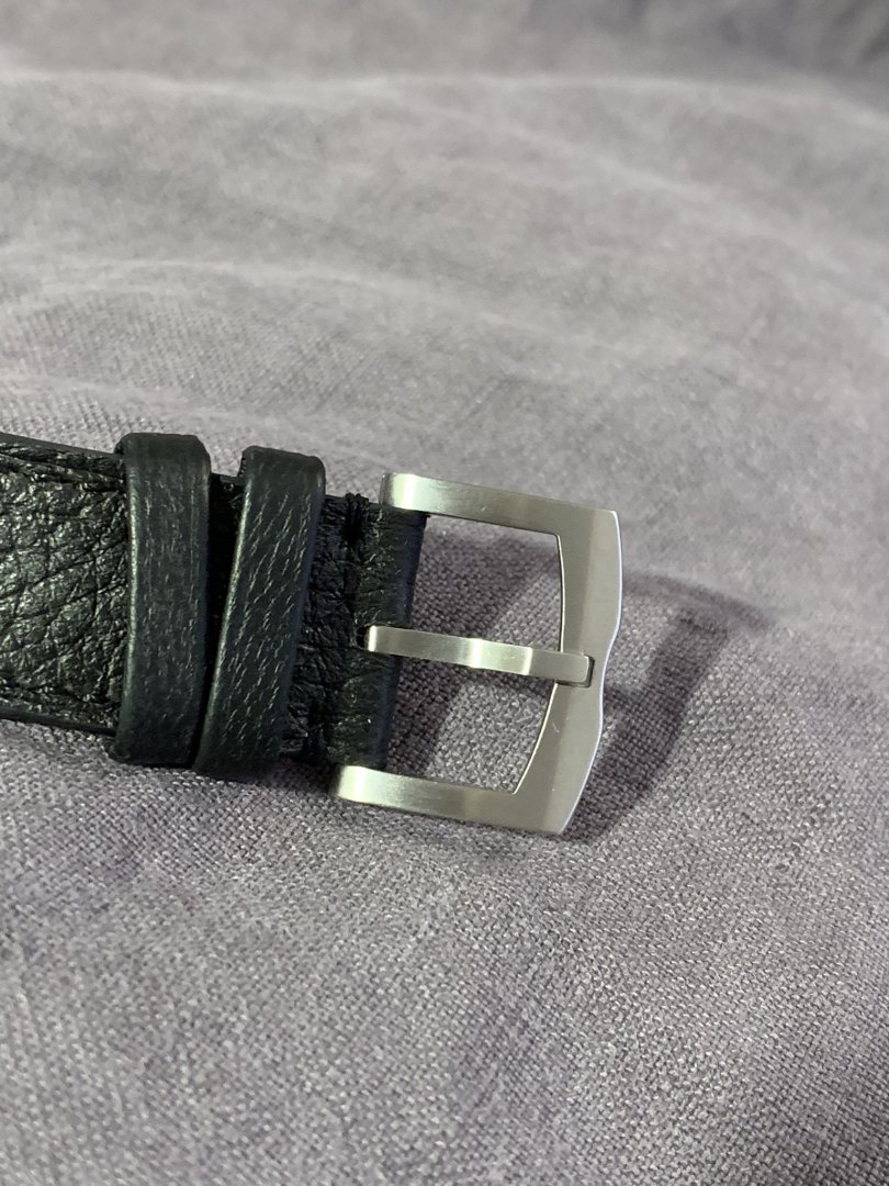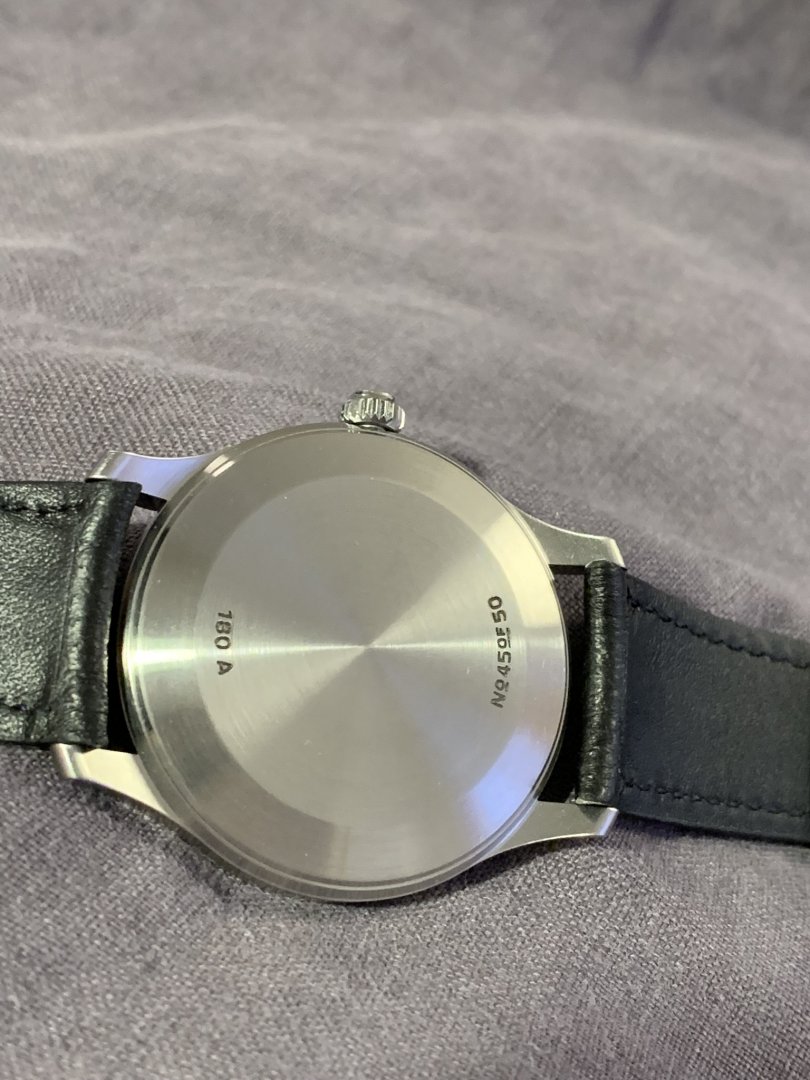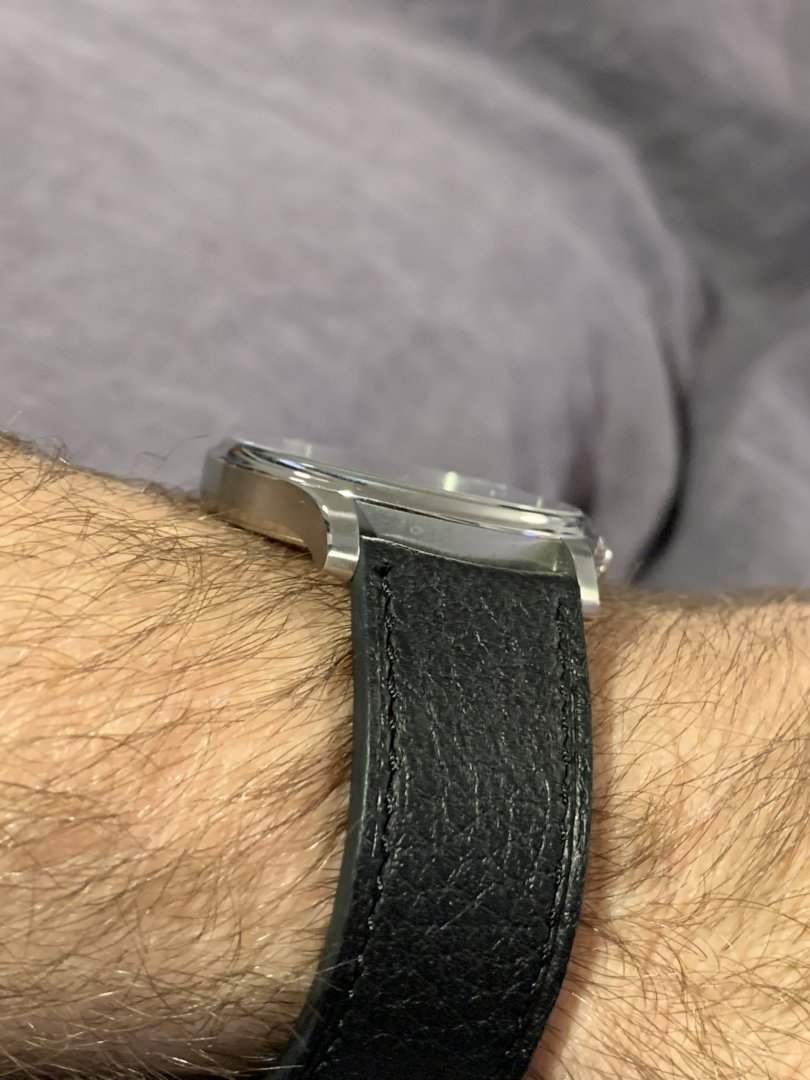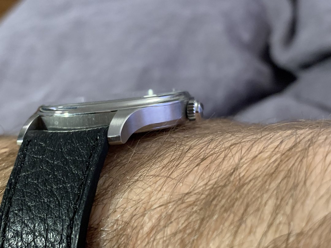 42 mm, men korte lugs og 10 mm tykkelse gjør at den virker mindre. Fargen her ikke så ulik det jeg går for, men med mindre blått og mer grått i sandwichen. Dessuten velger jeg nok den første skivevarianten med indekser i ytterkant og mer av verket synlig.
