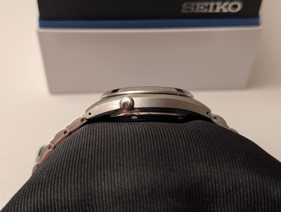 Klokken er fra 2024, meget pent brukt, og jeg ser så vidt noen små hairlines.