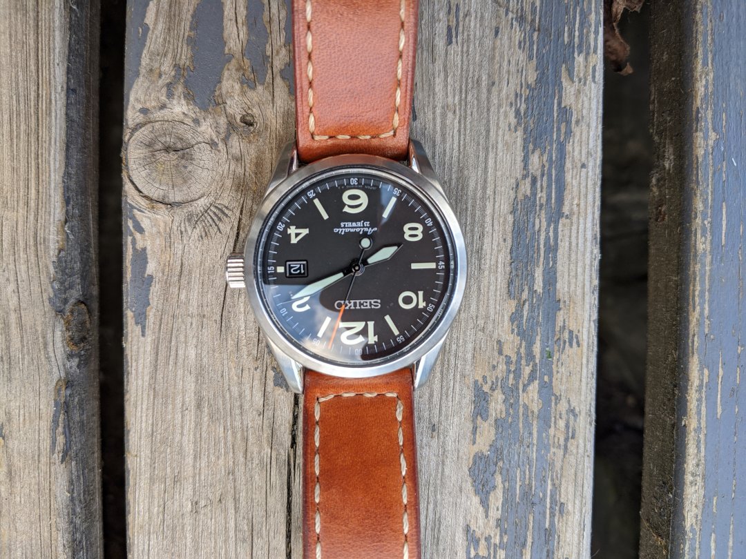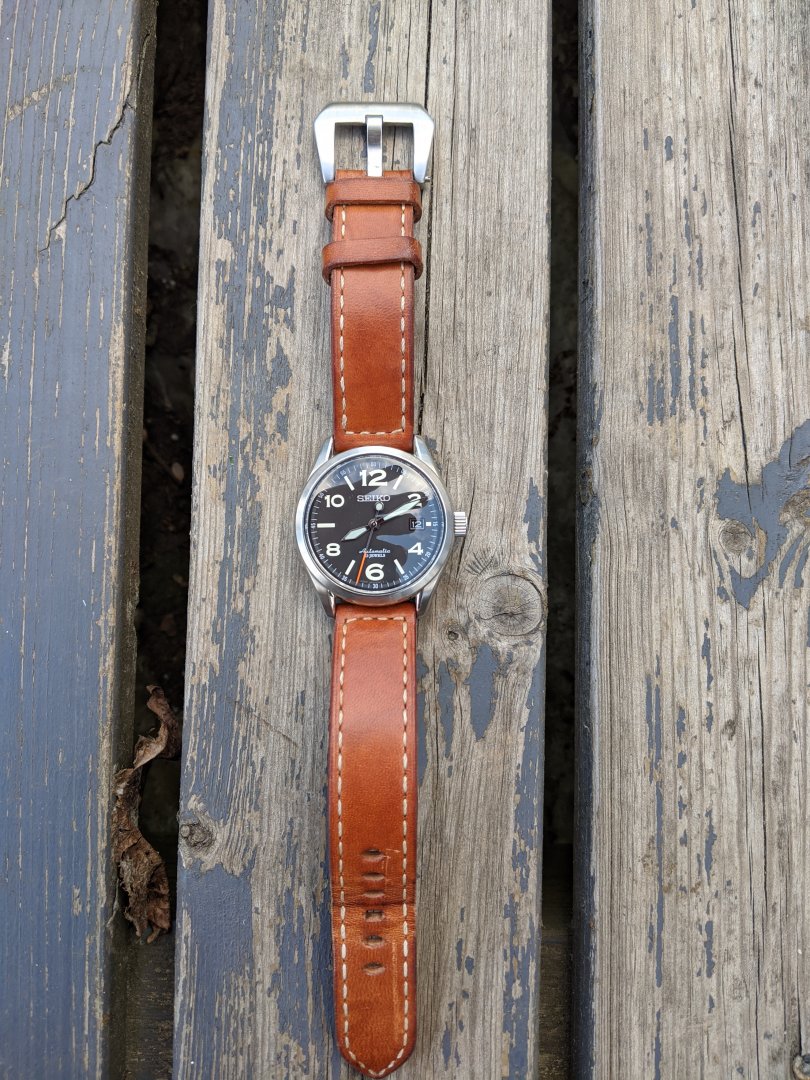 Seiko SARG 011. 6R15. Håndlaget reim, 'natural' leather. Denne + originalreim medfølger. 5k inkl Norgespakke