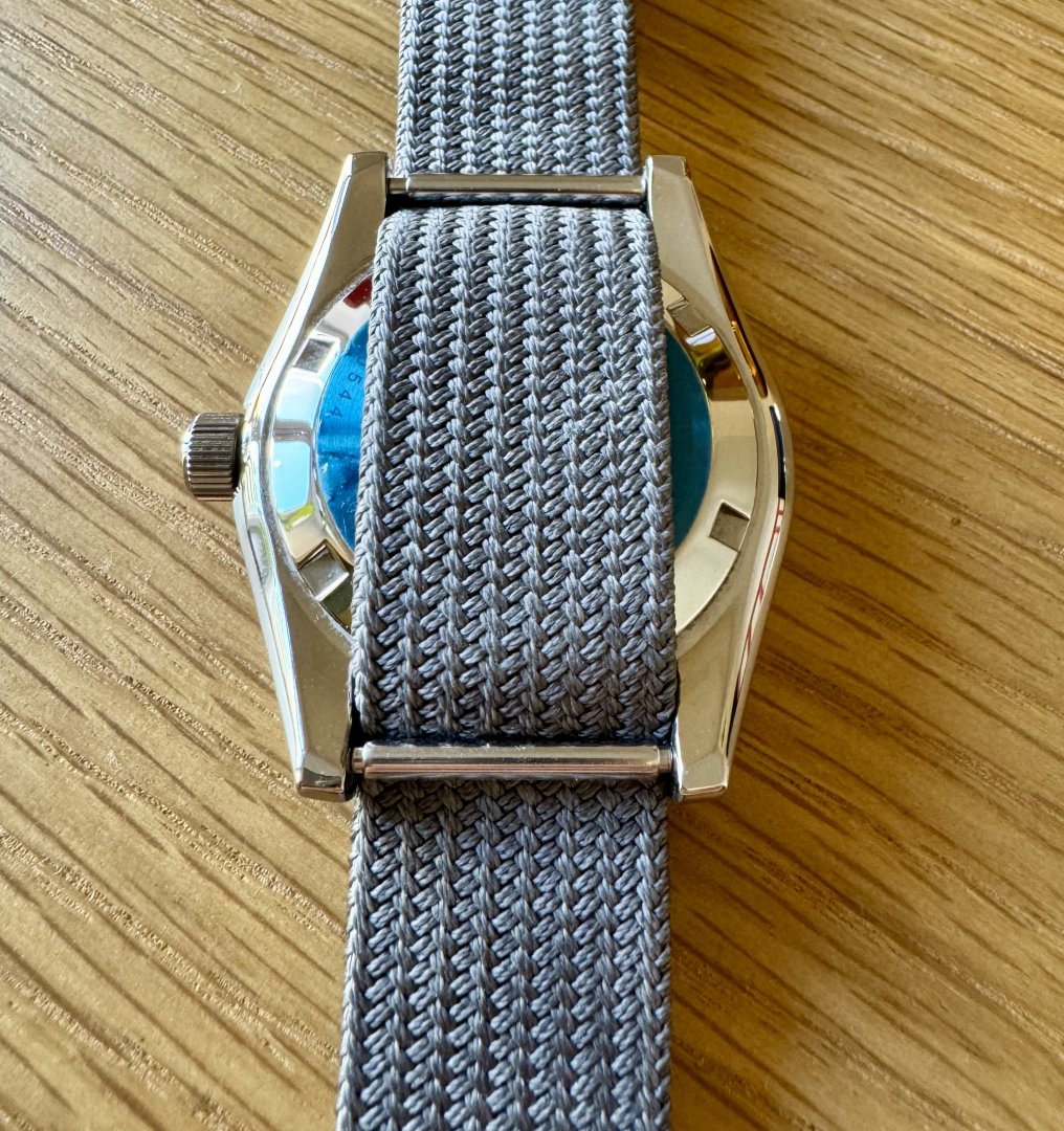 Selges komplett med boks og kvittering. Klokken kom med to natoremmer, som selvsagt følger med. Klokken befinner seg i Oslo. Selges for 6000,-.