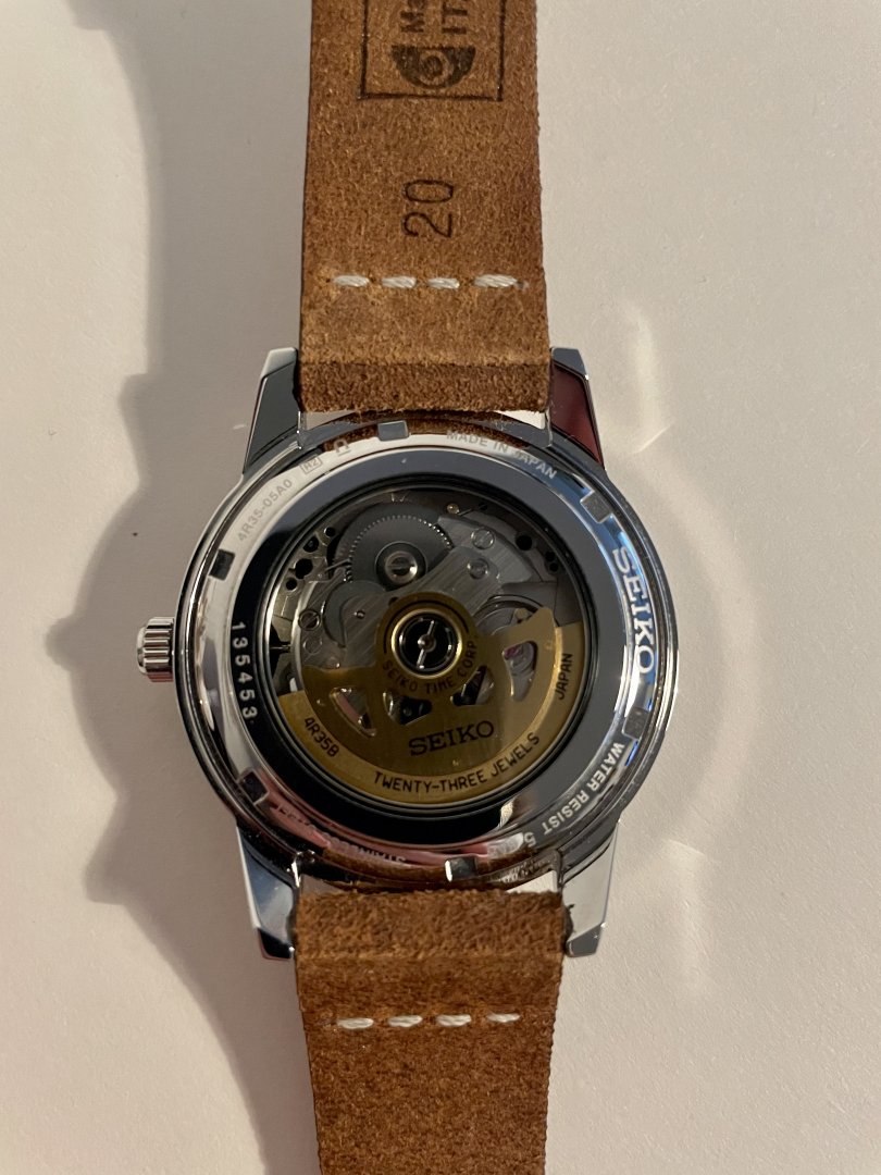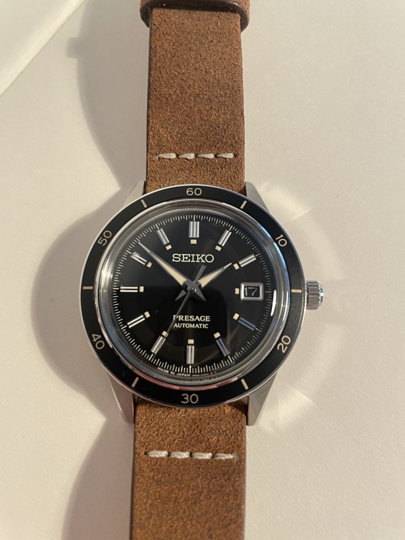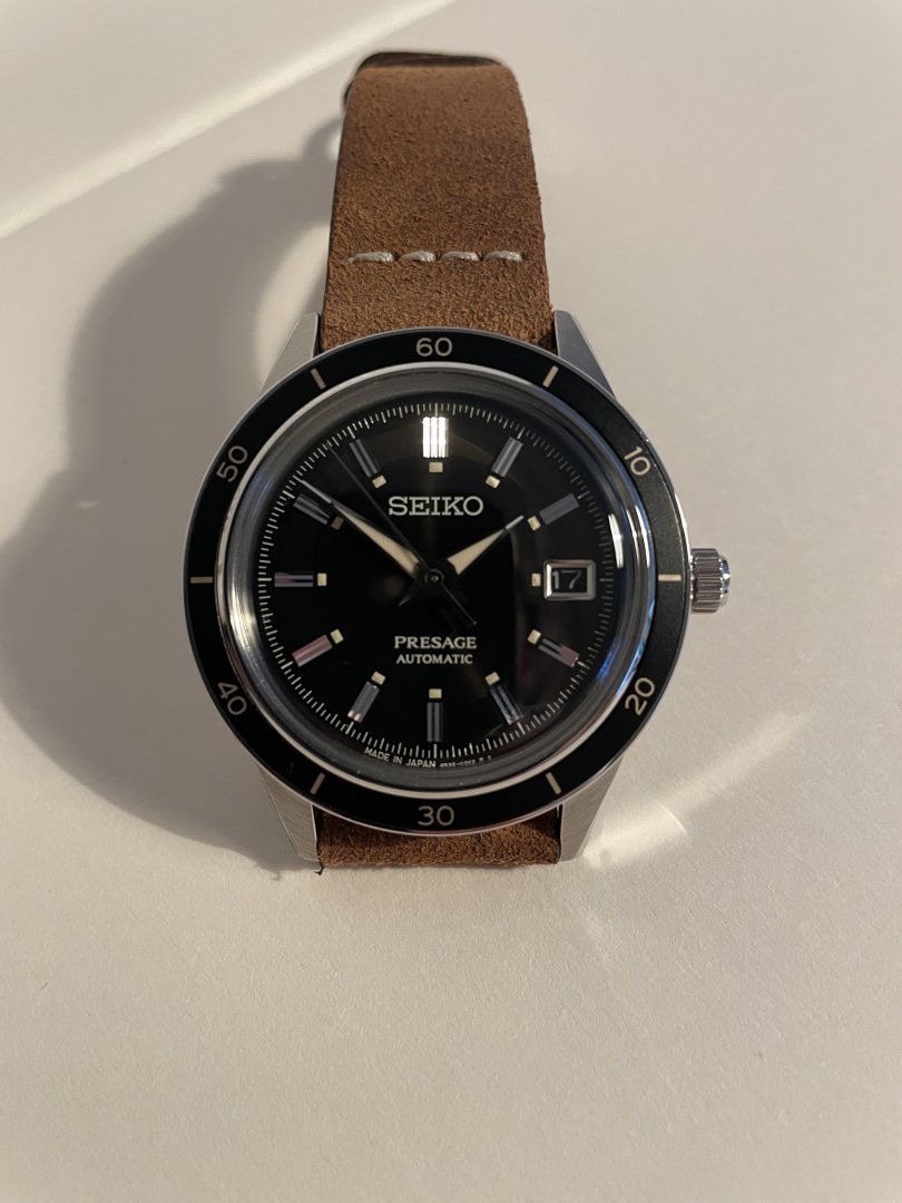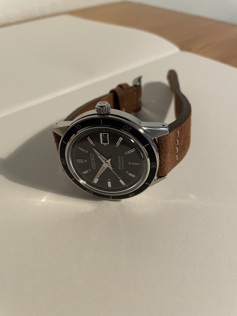 Selger en Seiko SRPG09J1, eller Seiko Presage Automatic style 60’s som den også markedsføres som.