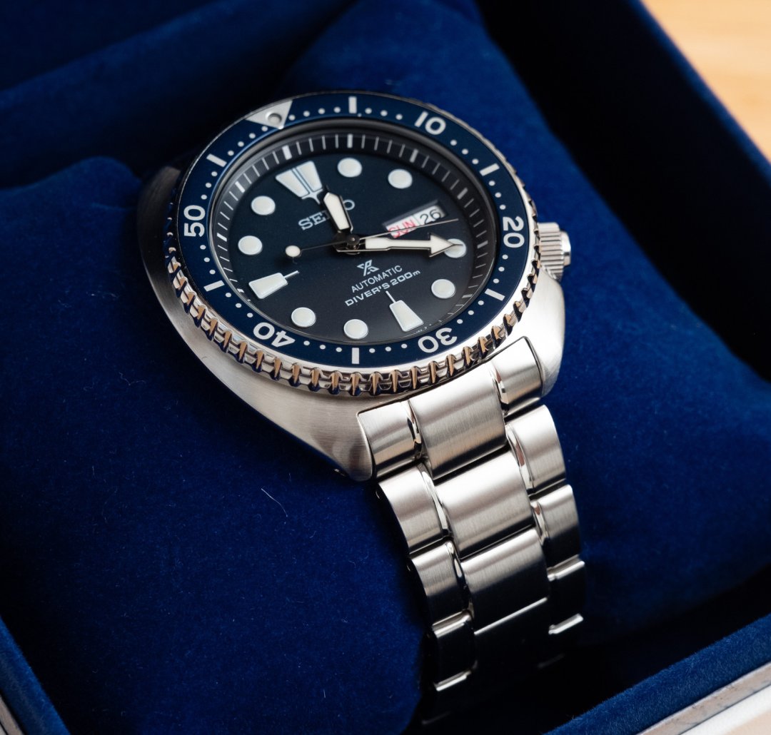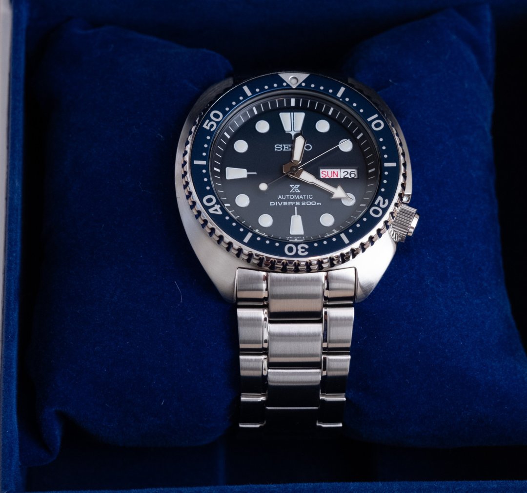 Urskive: Blå med selvlysende markerer indeksmarkeringer, selvlysende visere