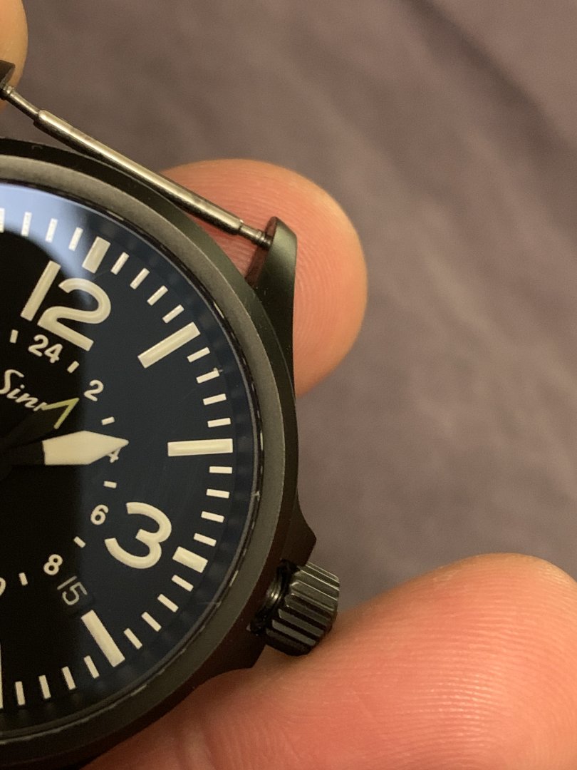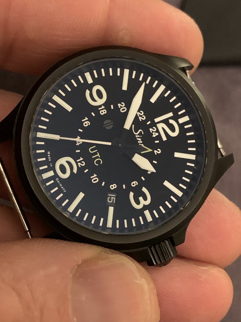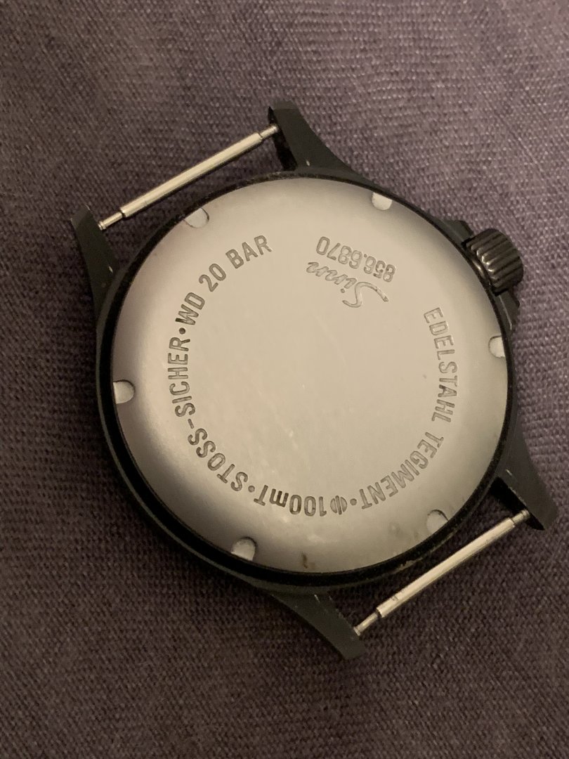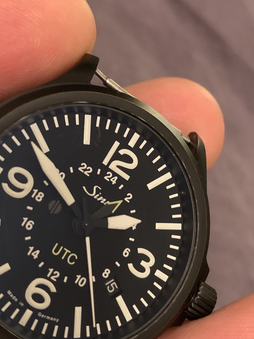 Flott klokke med kun noen svake bruksmerker i det svarte belegget. Synes ikke annet enn ved nøye inspeksjon. Også et merke i antirefleksbelegget på glasset ved kl 1.