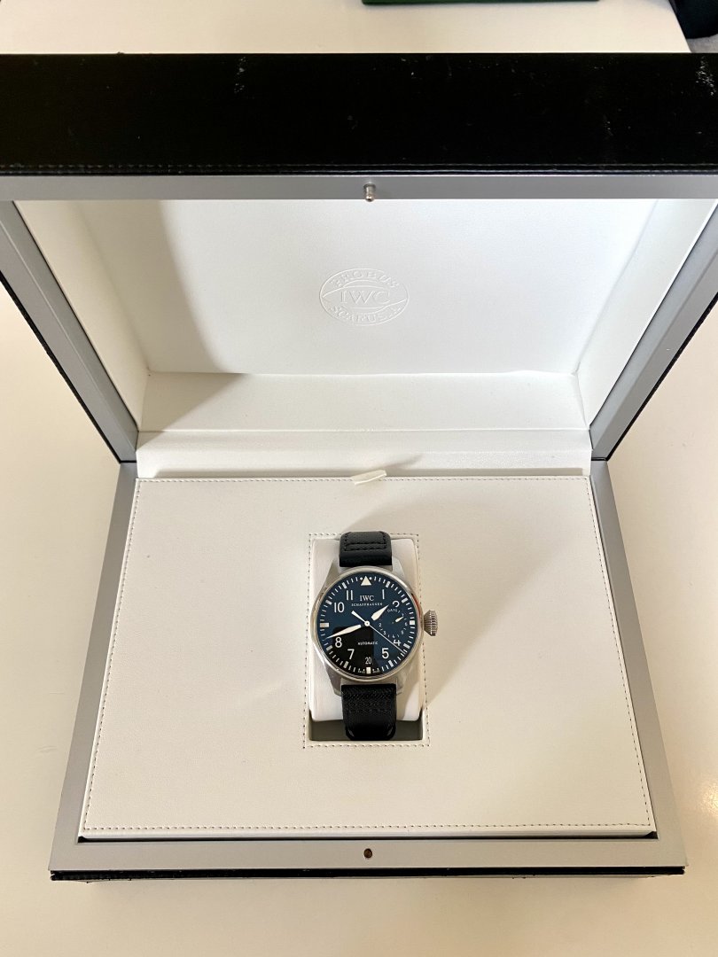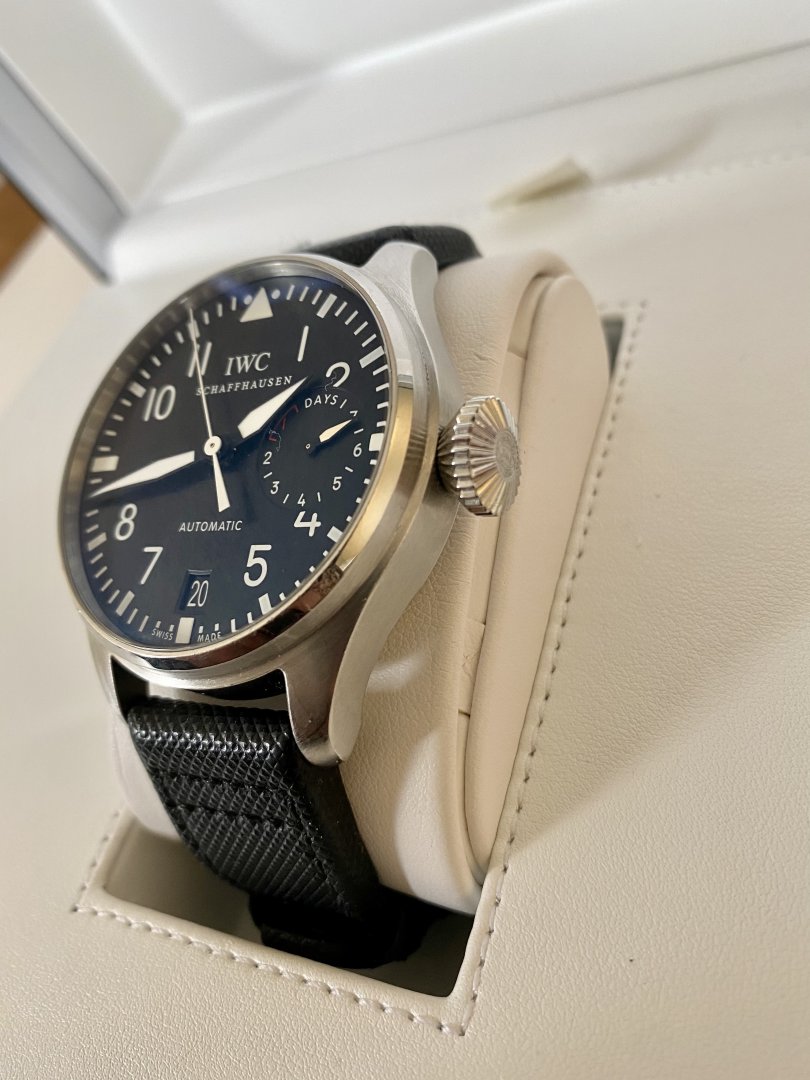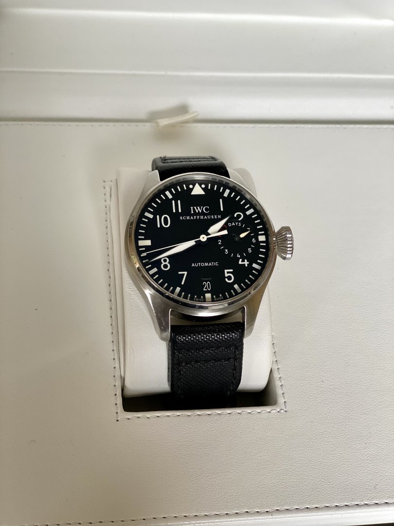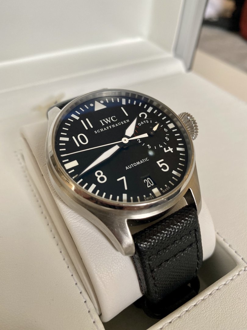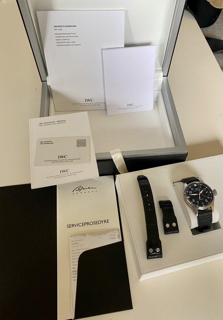 Selger en meget pen og velholdt IWC Big Pilot. Klokken er stor men bærer faktisk mye mindre enn man skulle tro.