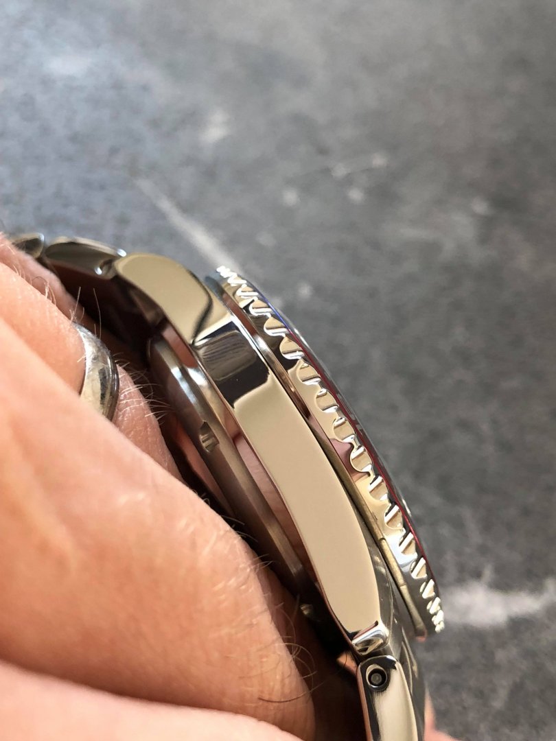 39mm, mekanisk, safirglass - se mer her. Kassen har ingen merker, og fremstår som helt ny. Plasten på baksiden er stadig på. Et par hairlines på lenken. Fire ekstra ledd. Jubileelenke med passende endlinks følger med, samt to ekstra ledd.