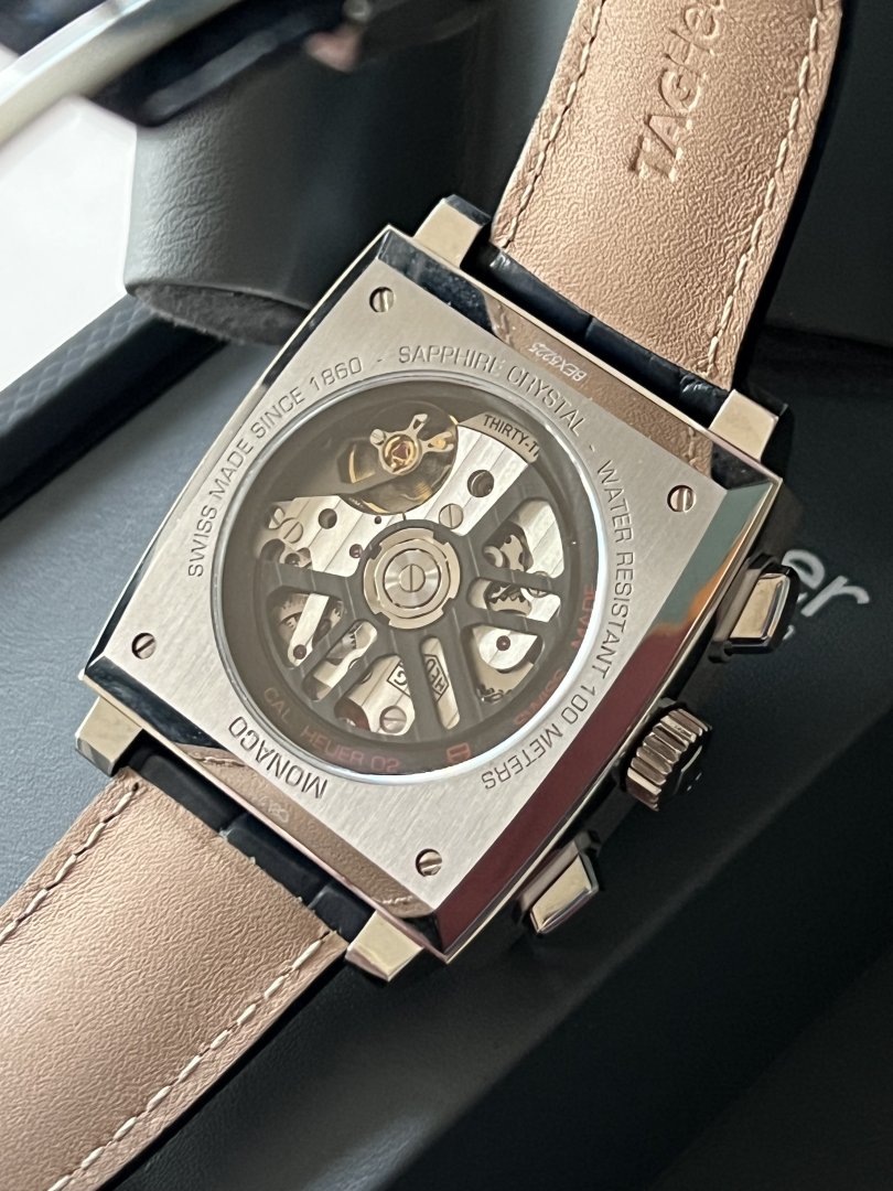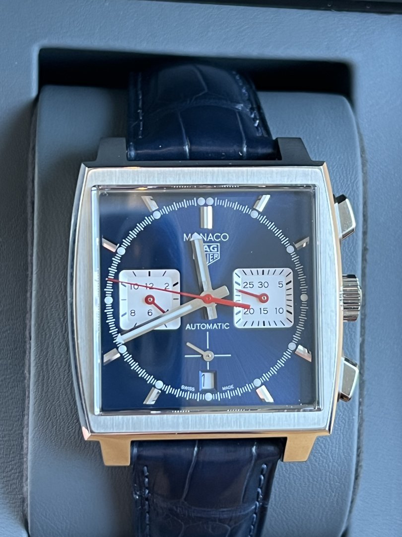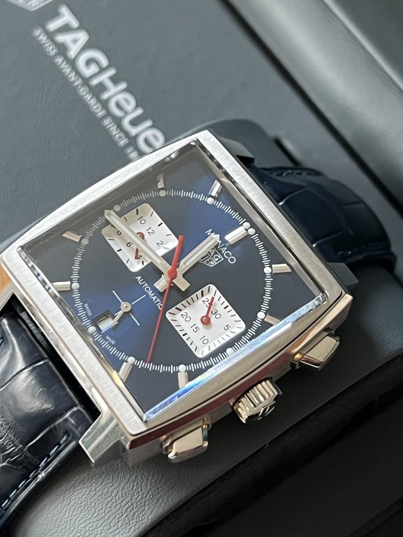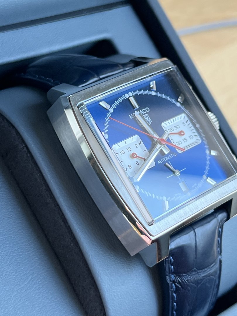 «TAG Heuer Monaco med Heuer 02-urverket kombinerer vintage og tidløst design med moderne teknologi. Denne klokken, tro mot den originale blå, firkantede Monaco, har en imponerende gangreserve på 80 timer.