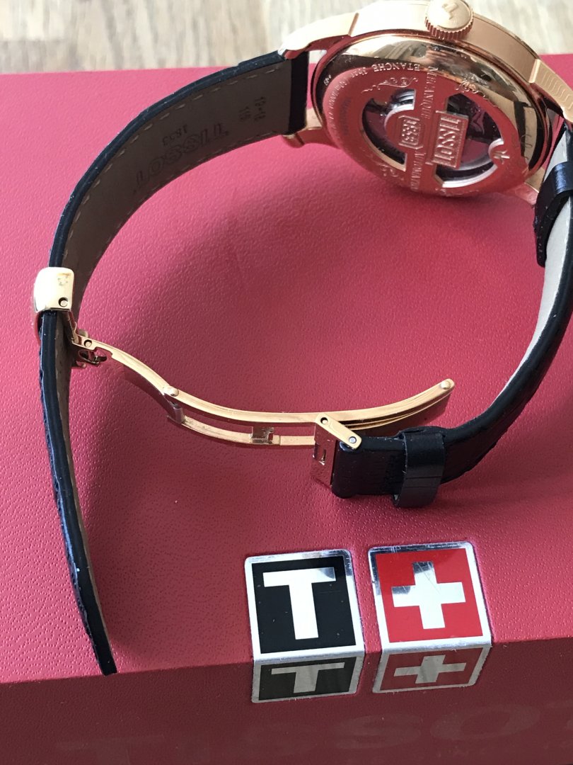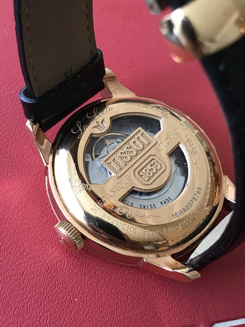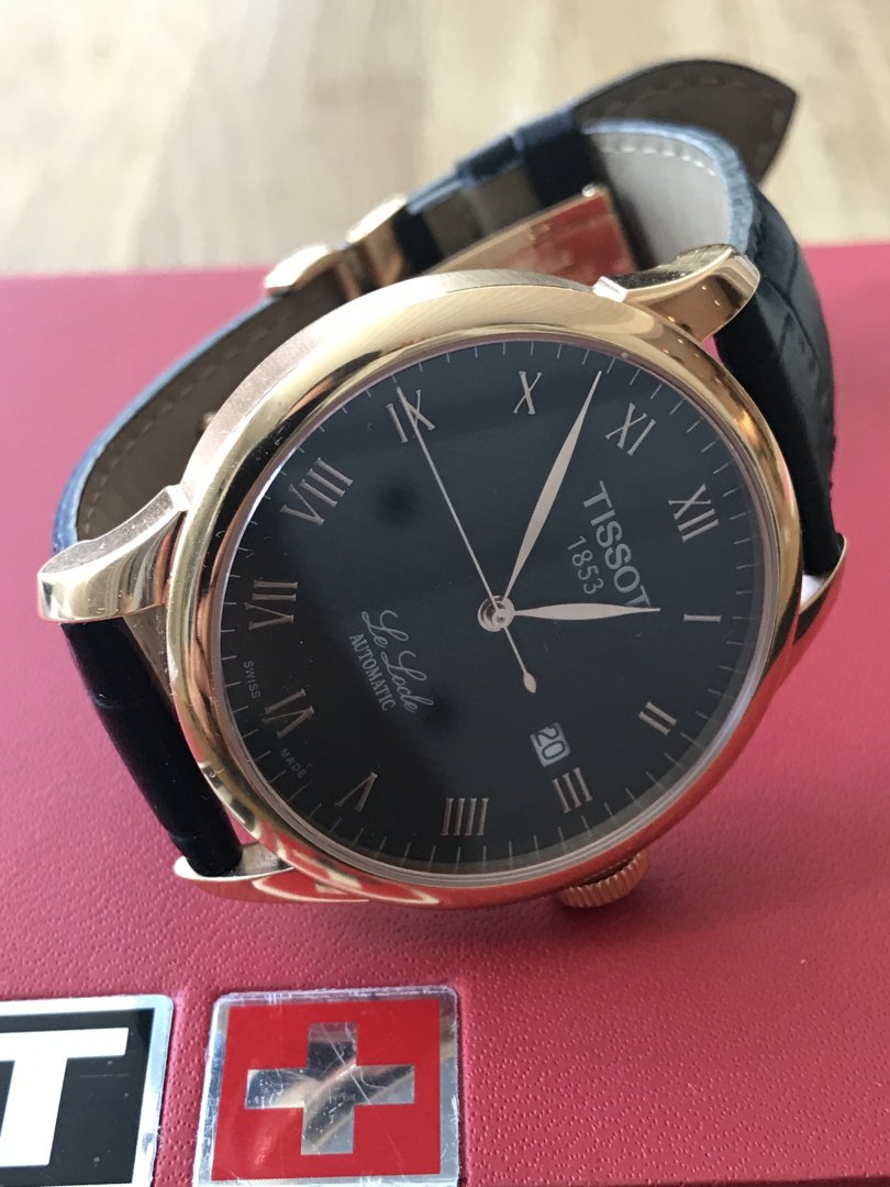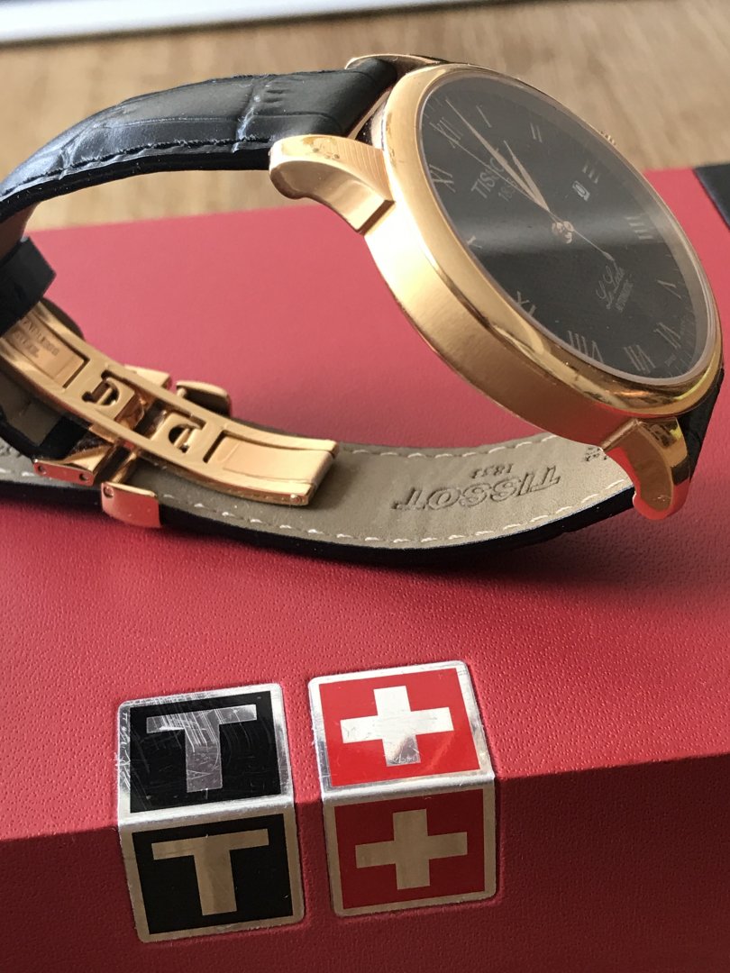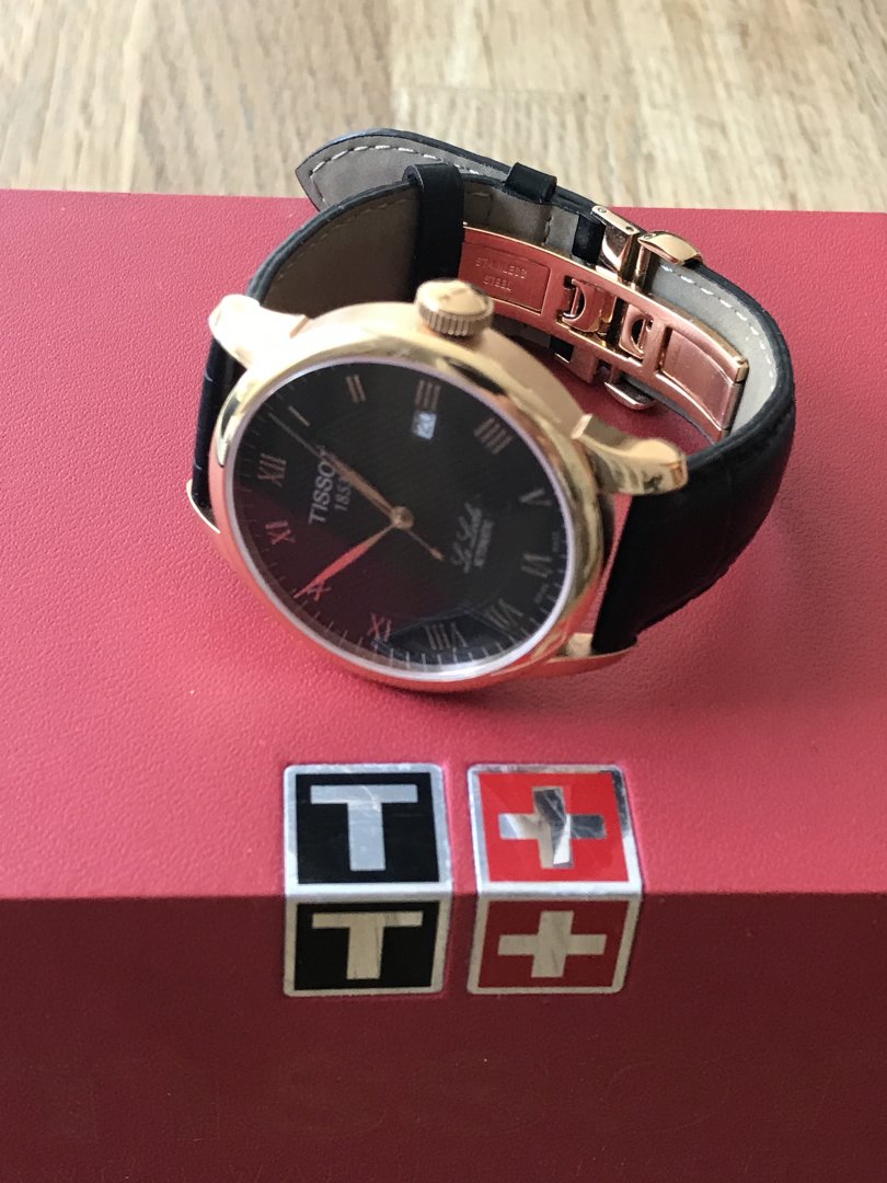 Selger en utrolig pen Tissot Le Locle med sort skinnreim og rosegull.