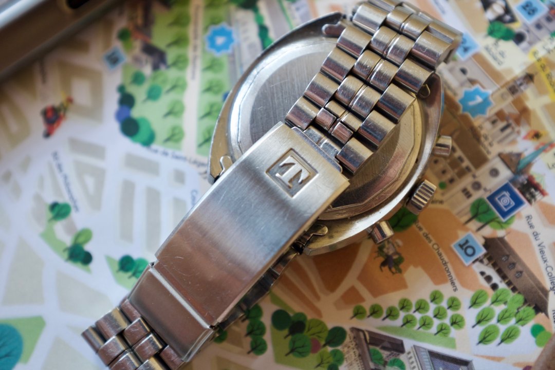 Kronografen går bra, og sekundviseren resettes korrekt. Den herlige kassen på 40,5mm er også i god stand, alderen tatt i betraktning. Videre har sjøstjerna en herlig sølv skive, uten feil, selvsagt dandert med frekke farger. Om du mot formodning skulle foretrekke et mer subtilt utrykk medfølger det en ekstra sort skive. Førstnevnte er dog min personlige favoritt. Det hele toppes av en behagelig lenke, som jeg vil påstå at passer håndledd opp mot 17,5 cm. Forøvrig slenger jeg med en del diverse reimer.