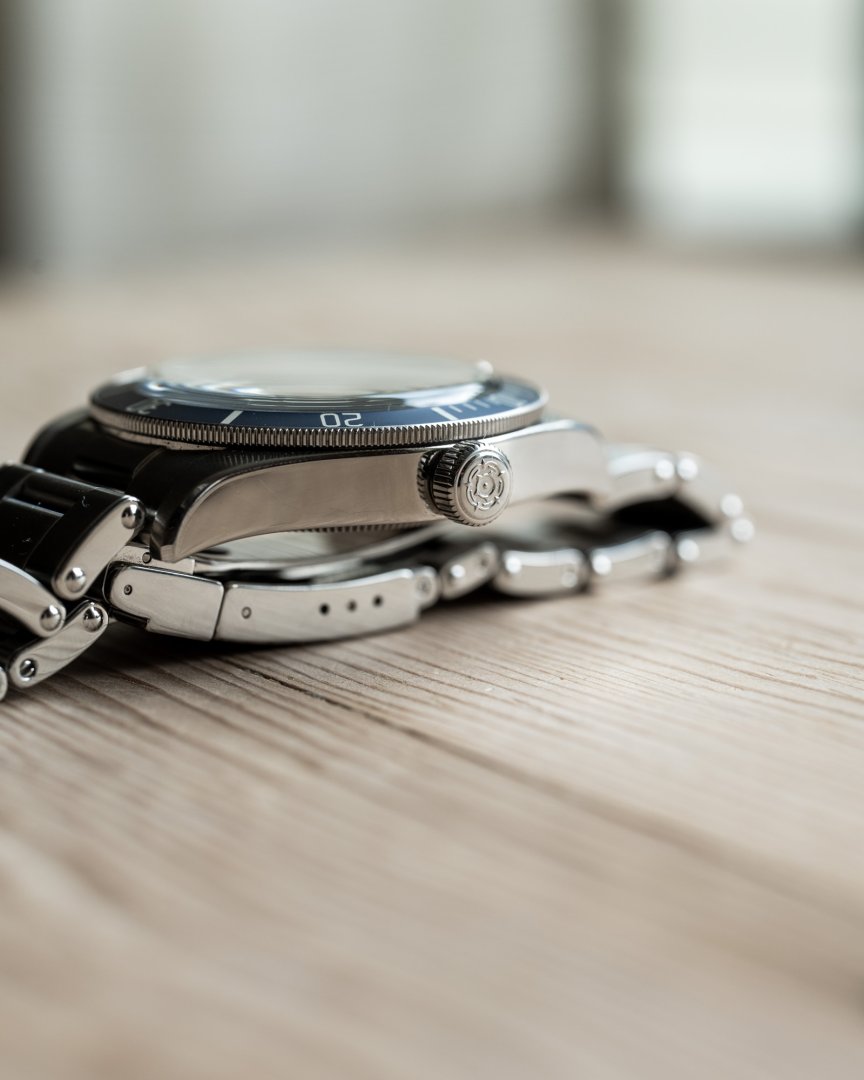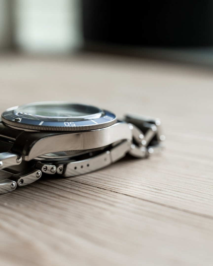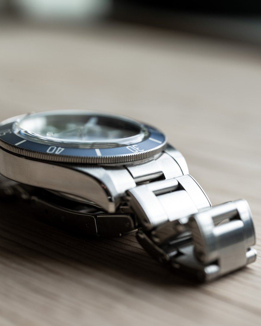 Bezel: Unidirectional rotating bezel with blue anodized aluminum insert (60-minute scale)