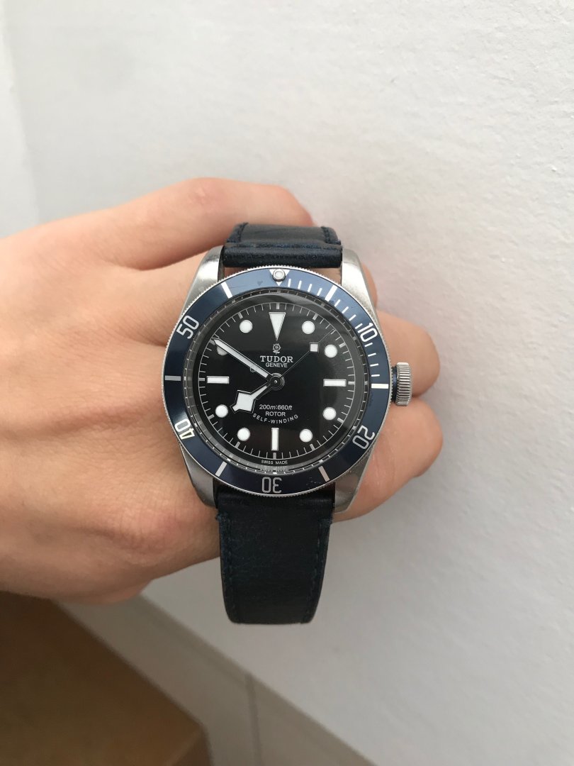 Selger her en fin brukt Tudor Black Bay Blue kjøpt brukt i 2017 av en her på tidssonen. Det er en 2015 modell og hatt den nå i 2 år (2 eiere)