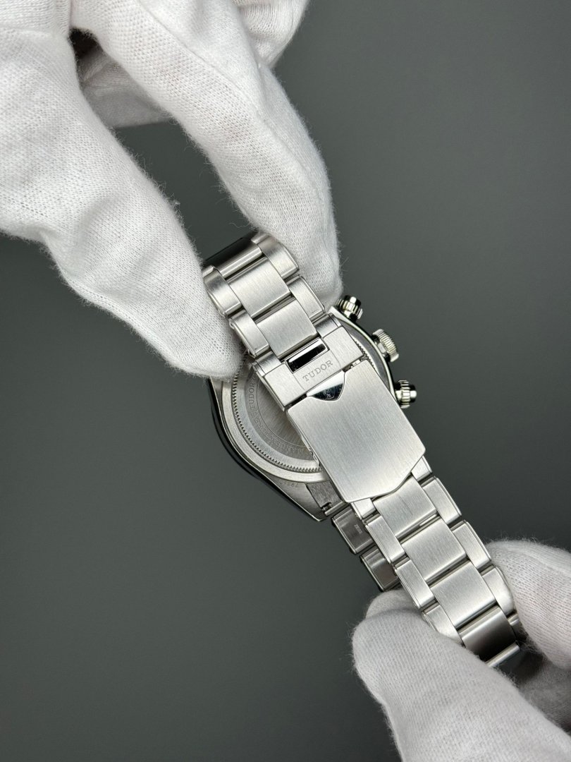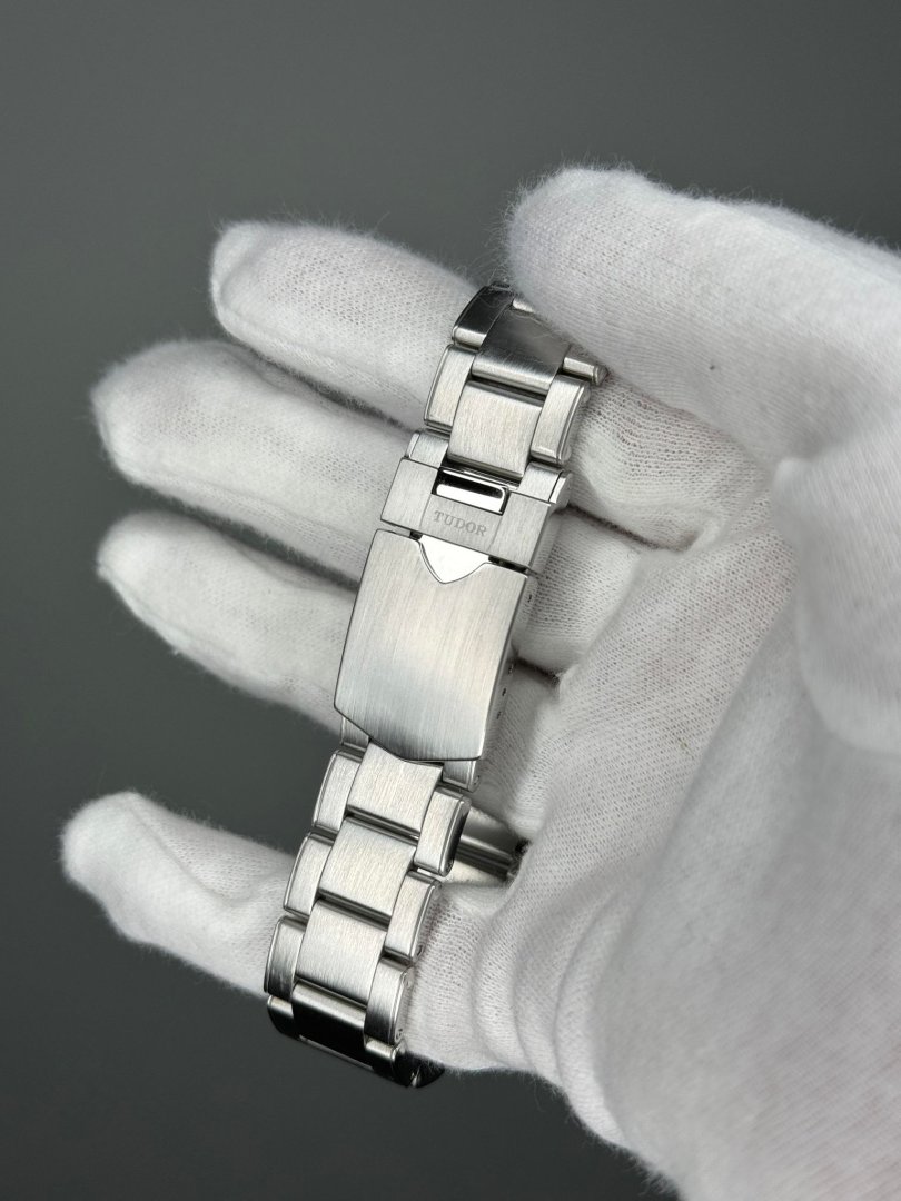 Urverket i modellen er Tudor sitt automatiske urverk MT5812, som har en gangreserve på ca. 70 timer. Bezelen har en sort aluminiums-insert med tachymeterskala.Klokken kommer komplett med inner og yttereske, klokkeboks, manual, garantikort, kvittering /Papirer fra urmaker Håkon Lian. Klokken ble tatt ut i 23 November 2021