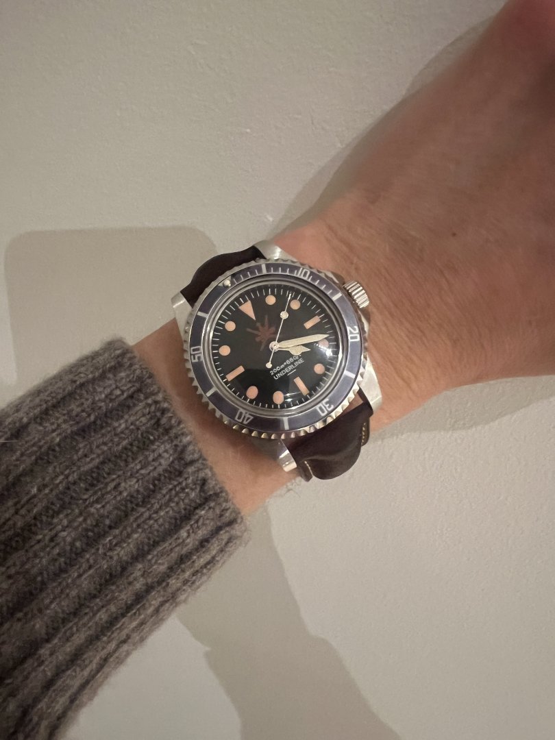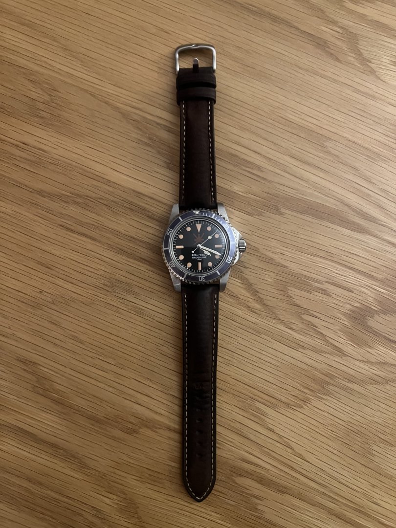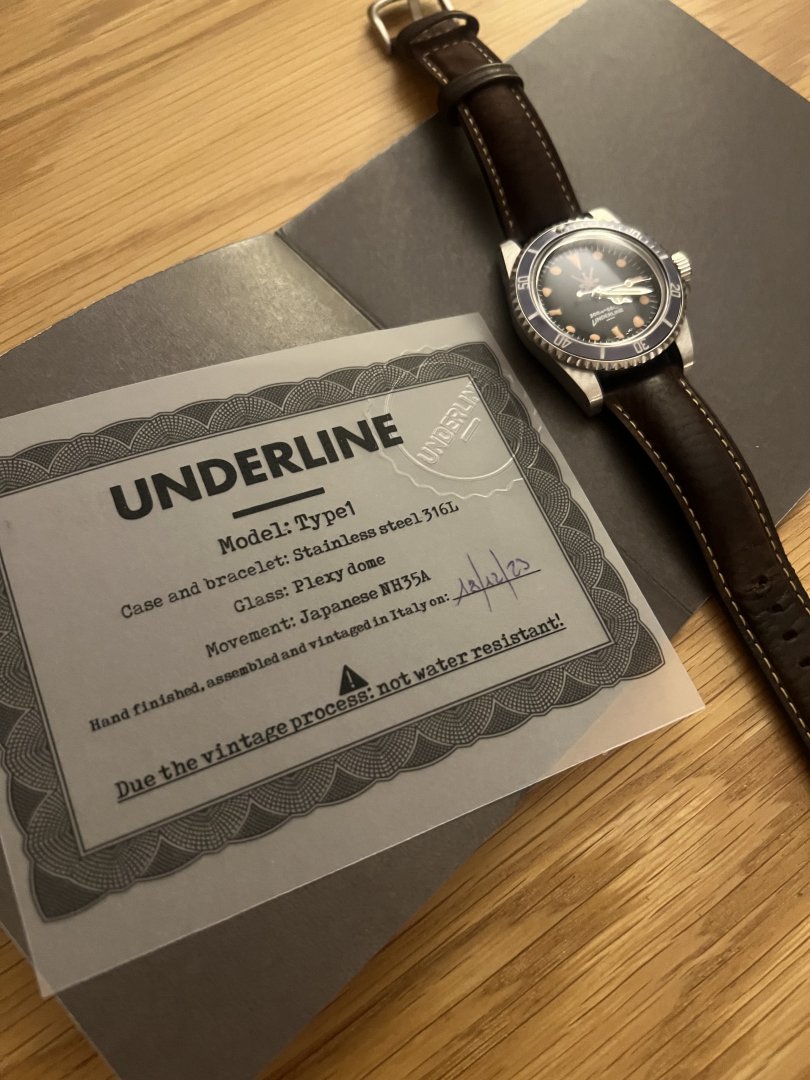 Selgere en kul Underline Type1 klokke på brun skinnreim. Lenken som satt på har dessverre blitt borte.