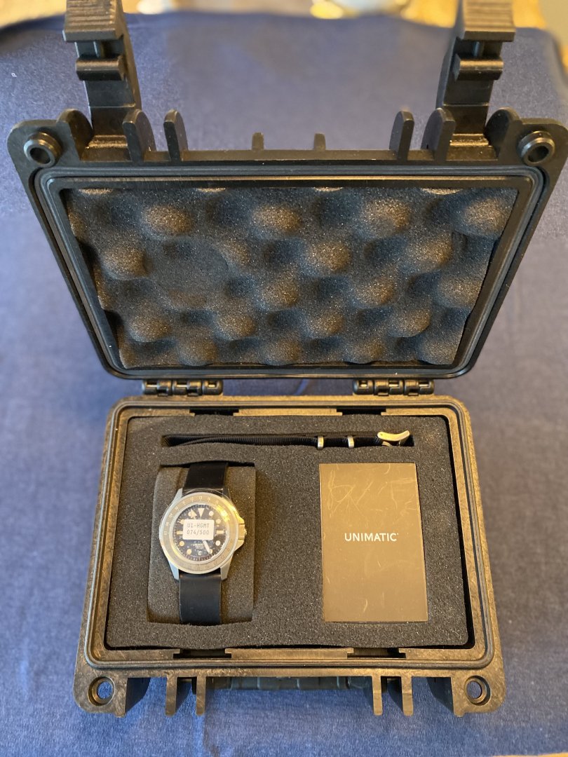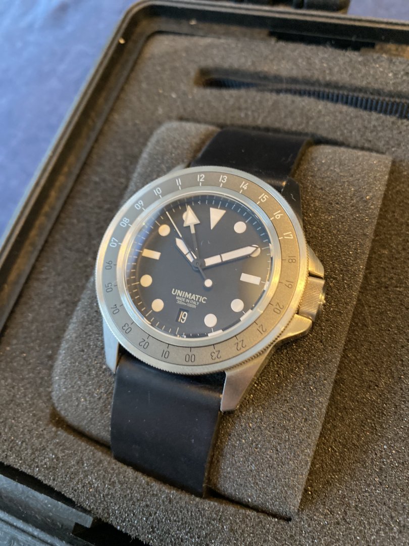 Selger en ubrukt Unimatic modello Uno som i samarbeid med HODINKEE laget denne limiterte utgaven.