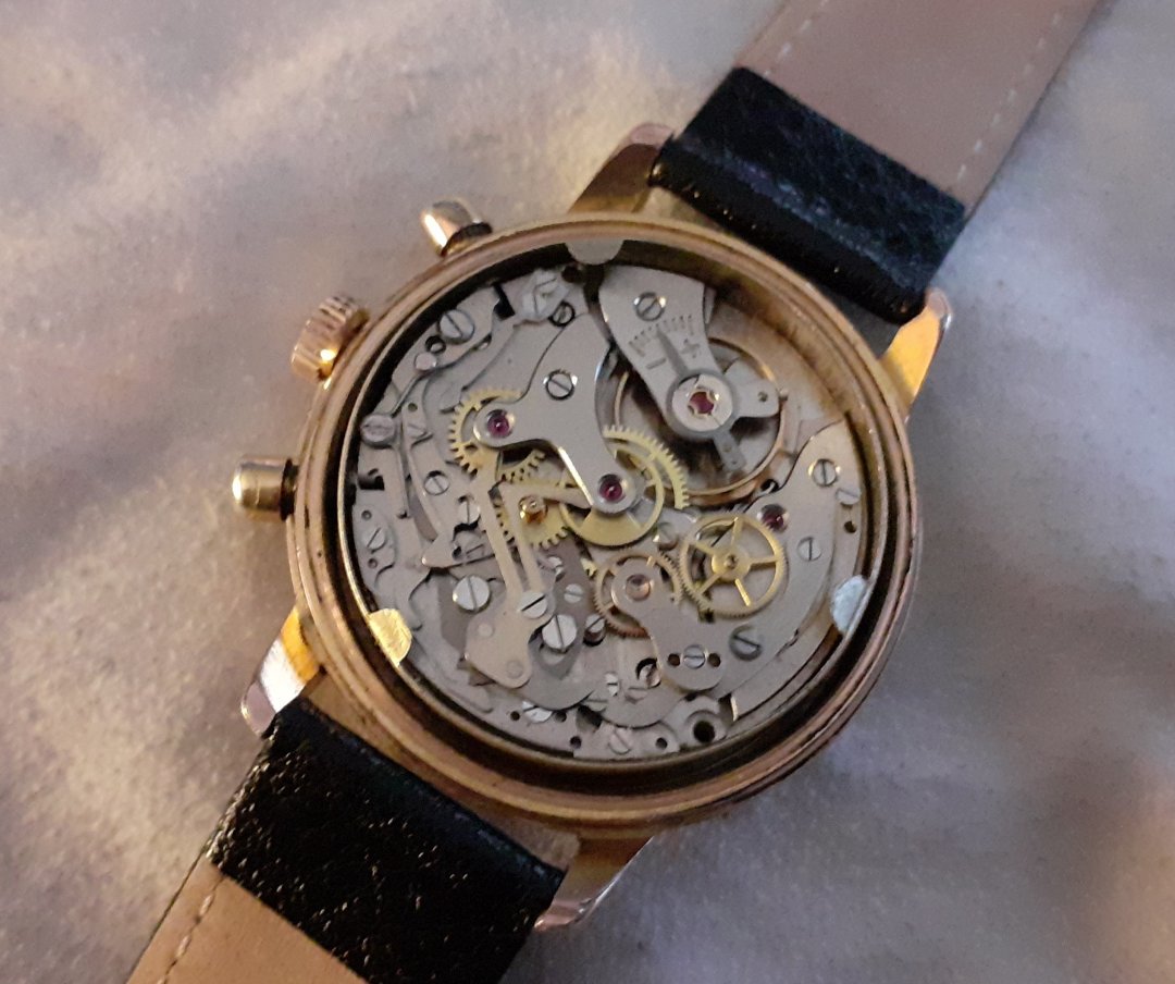 Lacorda Chronograph manuelt opptrekk i god stand med Landeron 149 urverk . Stor kasse fra den tiden 37,5mm pluss krone nøyaktig målt . Vanskelig å datere disse klokkene for dette Landeron 149 verket ble produsert i fra 1936 og frem til ca 1970 men jeg vil etter min erfaring tro att den er i fra 50 tallet . Er lett og fin i opptrekket , holder tiden meget bra og har god gangreserve og chronograph resetter presist til 12 . urskiven har noe patina men det er vel kanskje ikke så rart etter ca 70 år . Er påmontert en ny kalveskinns reim av god kvalitet fra Condor .Selges til en hyggelig pris kr 2500 pluss frakt .