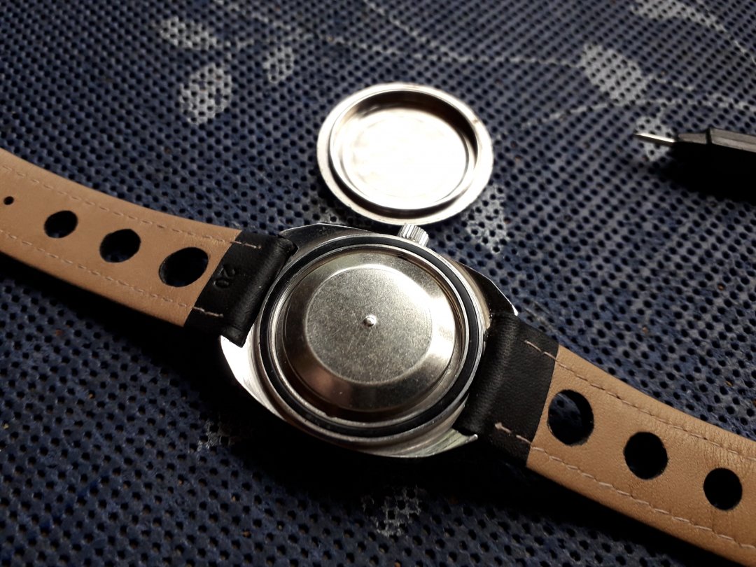 Swiss Made Rutina Dykker 20ATU Superautomatic fra 70 tallet i strøken stand . Denne kjøpte jeg NOS for to år siden og verket ble da sett over og smurt opp av min urmaker . Meget bra verk i disse klokkene ETA 2783 25 Jewels med quickskift av dato . Skikkelig Stål kasse med antimagnetisk innerlokk under skrulokket . En nydelig sunburst blå skive med hvit ring rundt . Var den gang vanntett til 200m men er vel muligens ikke det i dag etter så mange år . sitter på en ny rally reim i sal lær fra Condor . En pen og tøff vintage klokke med godt verk i meget god stand til en god pris .