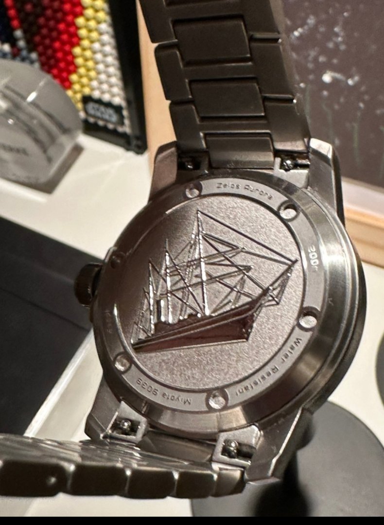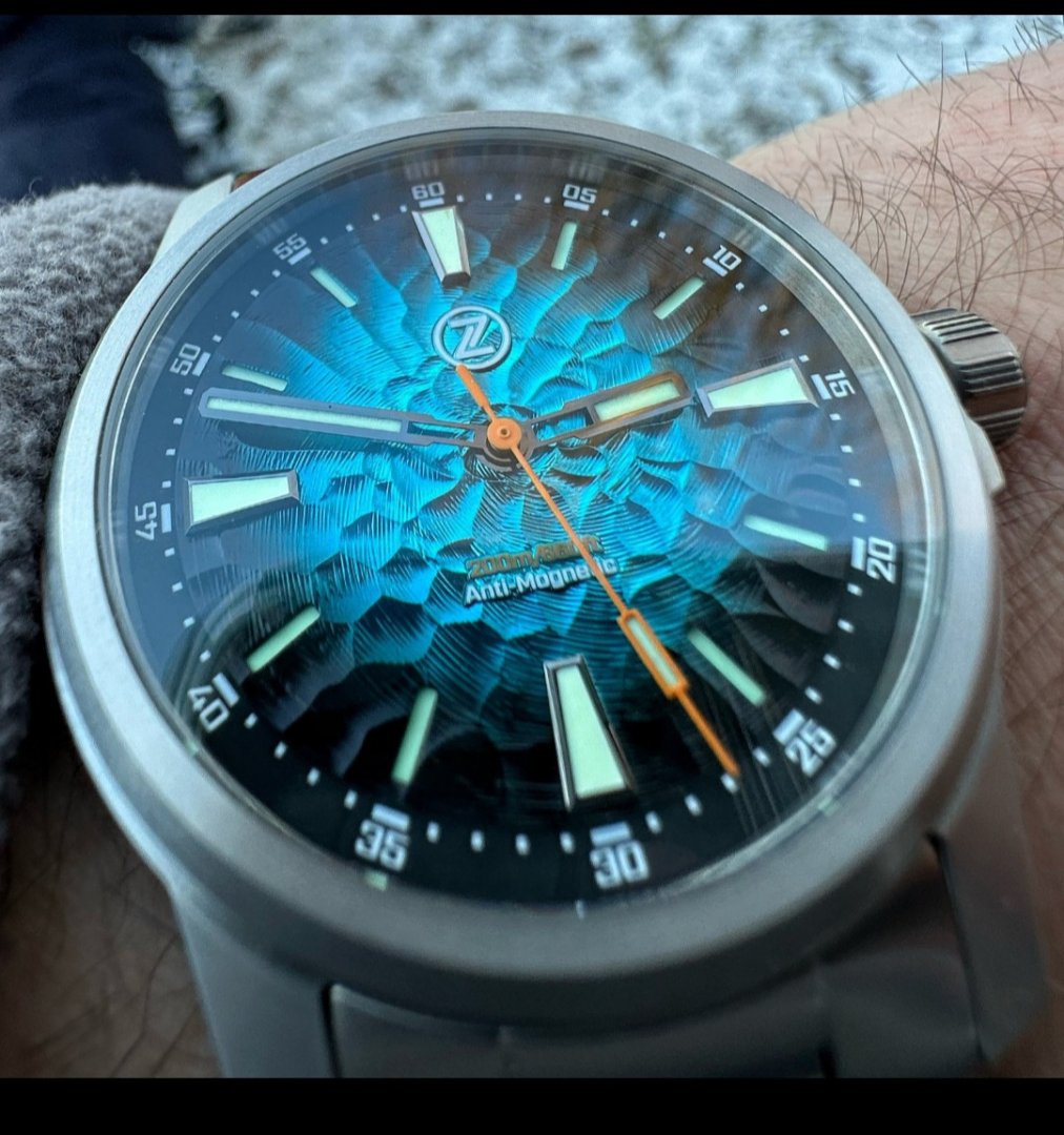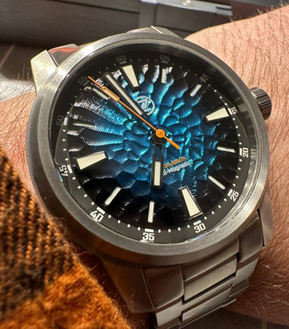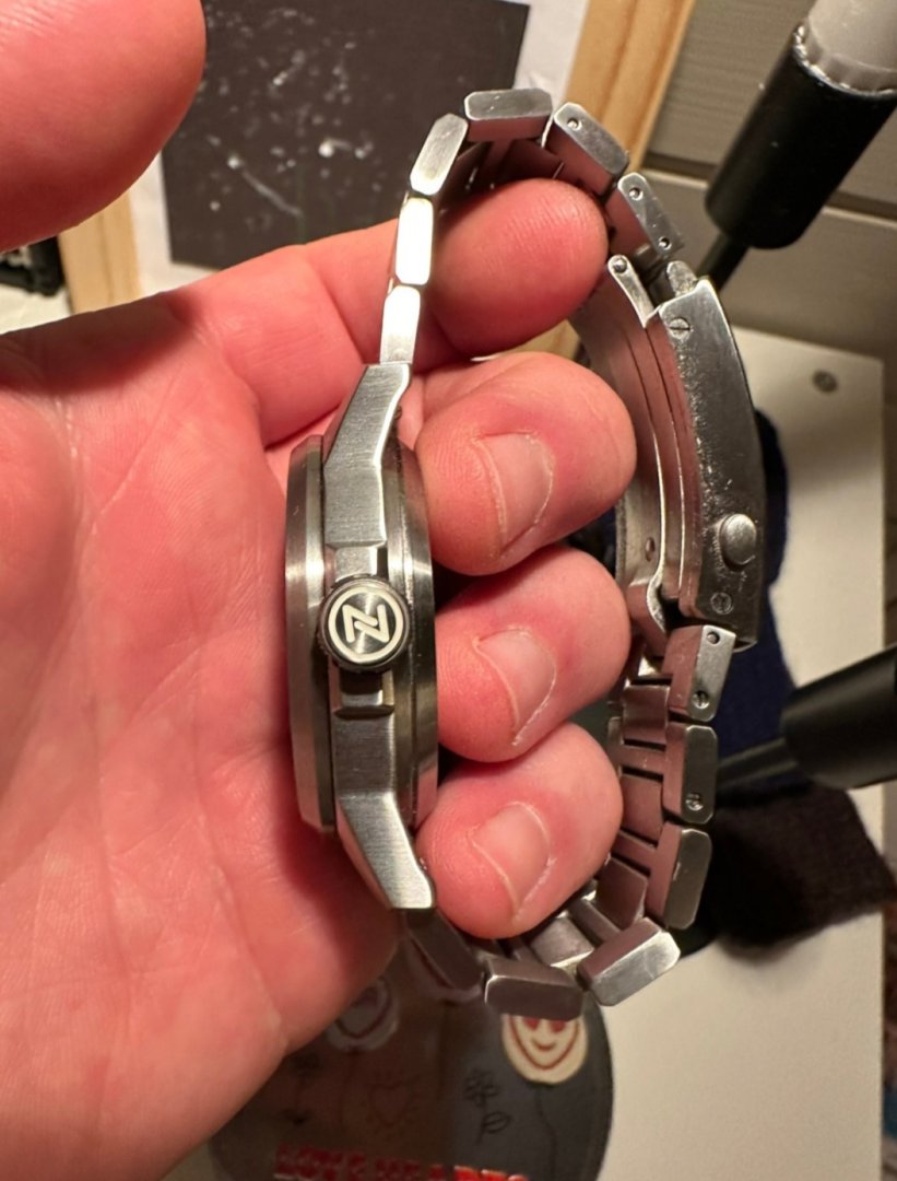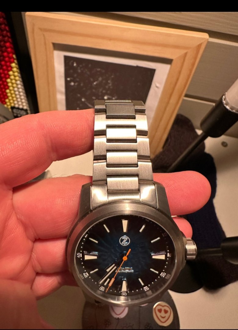 42mm, hel titan som er herdet. Vanvittig bra mikrojustering på clasp (helt verktøyløs justering), og skrudde ledd. Enorm kvalitet ift. pris.