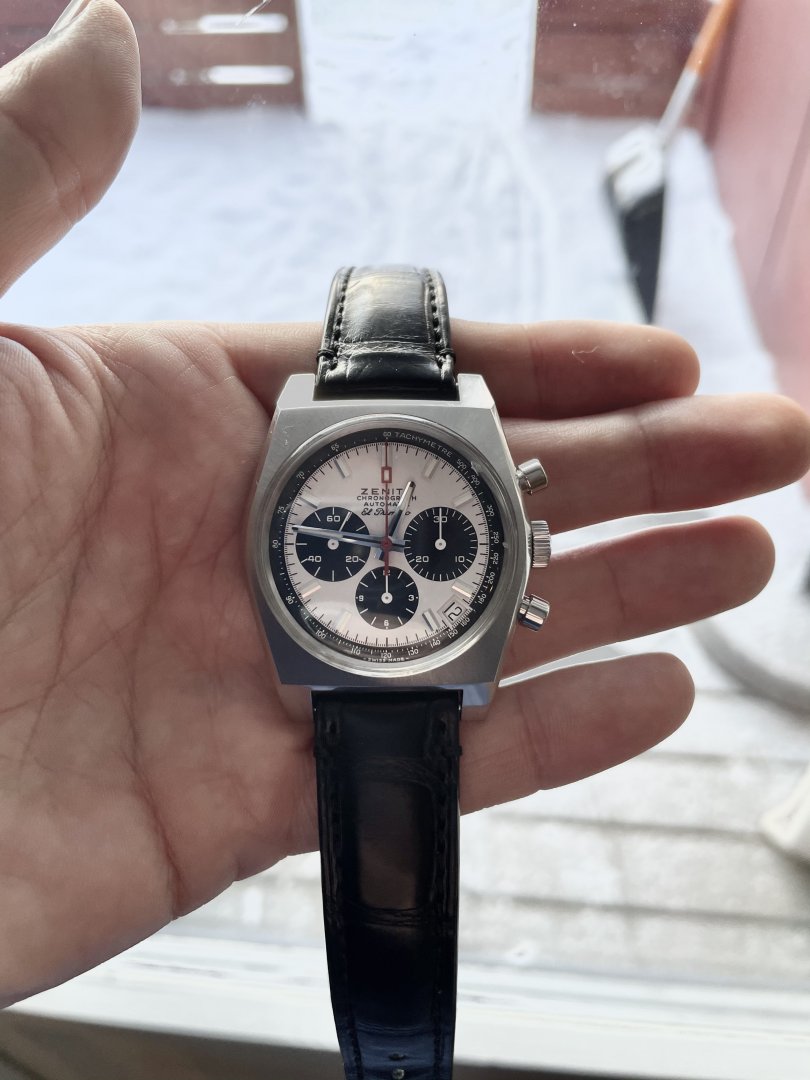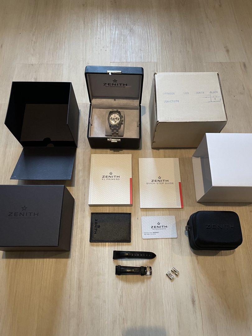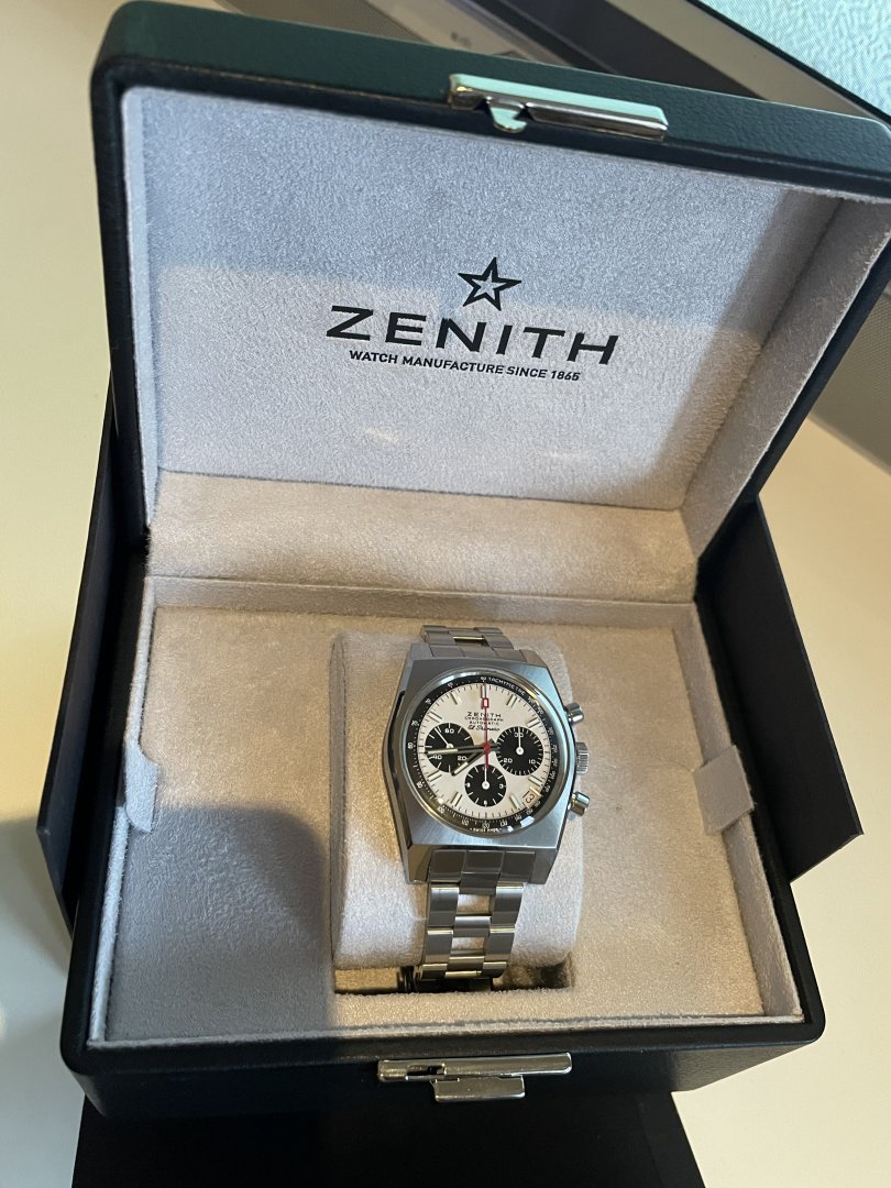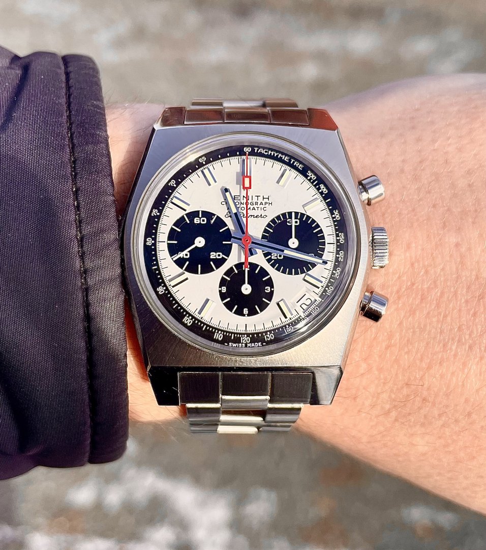 Selger her en sjelden sak i Norge, Zenith A384. Dette er en klokke entusiaster kjenner godt til, ellers anbefaler jeg et lite Google-søk for en fantastisk historie både når det gjelder urverk og lenke. En utrolig rå klokke med det ikoniske El Primero 400 urverket. Urverket kan sees gjennom baklokket. Klokken er 37mm og passer derfor alle håndledd og passer like godt om du vil være dresset opp eller sporty. Klokken kommer med både original lenke og alligatorreim samt boks, sertifikat, booklets osv. Se bilde for hele pakken. Kjøpt hos norsk AD i 2019 (eneste årgang stemplet med 1969-2019 på baksiden i forbindelse med 50-årsjubileet). Klokken fremstår i svært god stand. Sender gjerne flere bilder på melding til interessenter. Ser helst etter rent salg, men bytte kan være aktuelt. Fortrinnsvis Zenith og Rolex. Klokken befinner seg i Oslo.