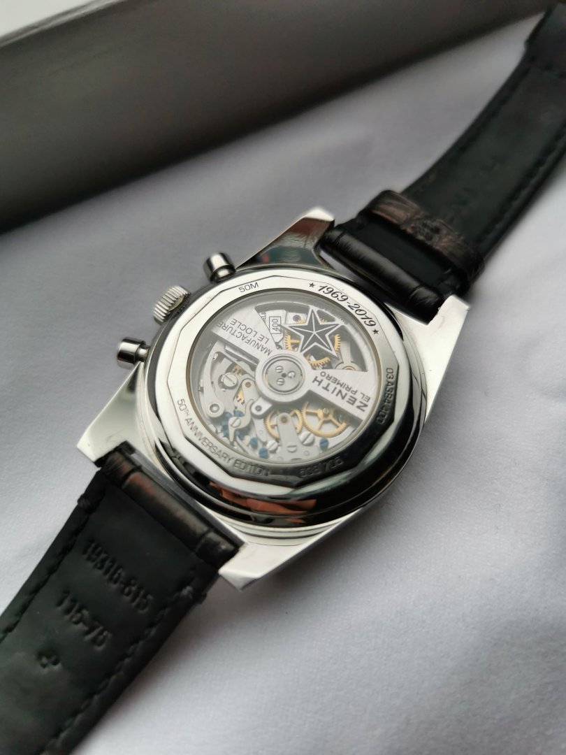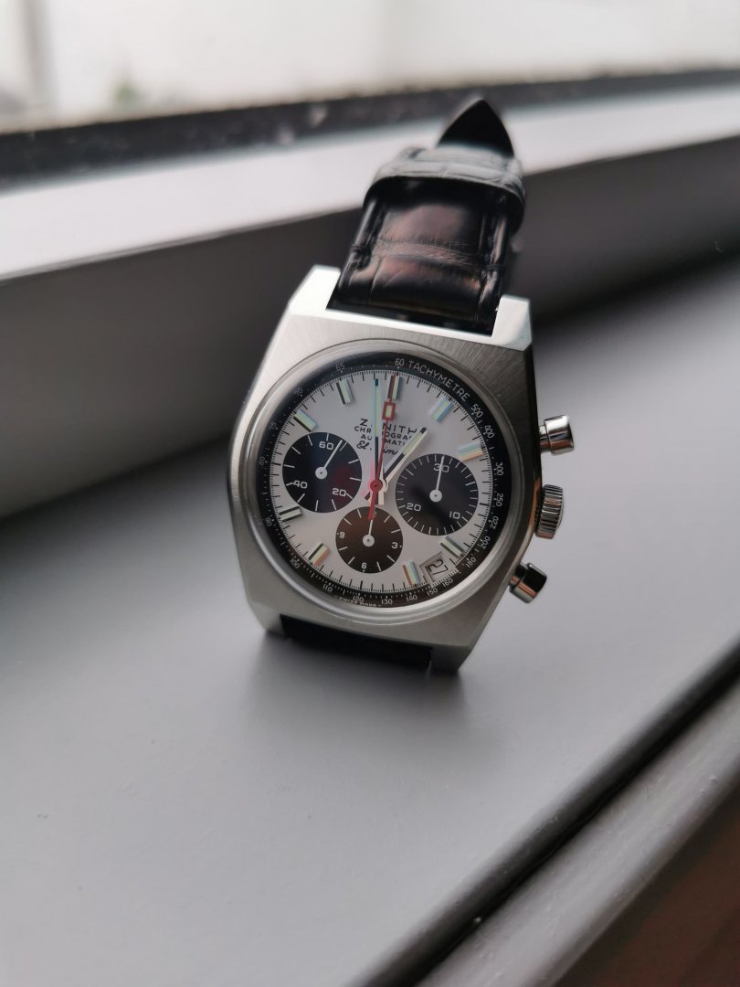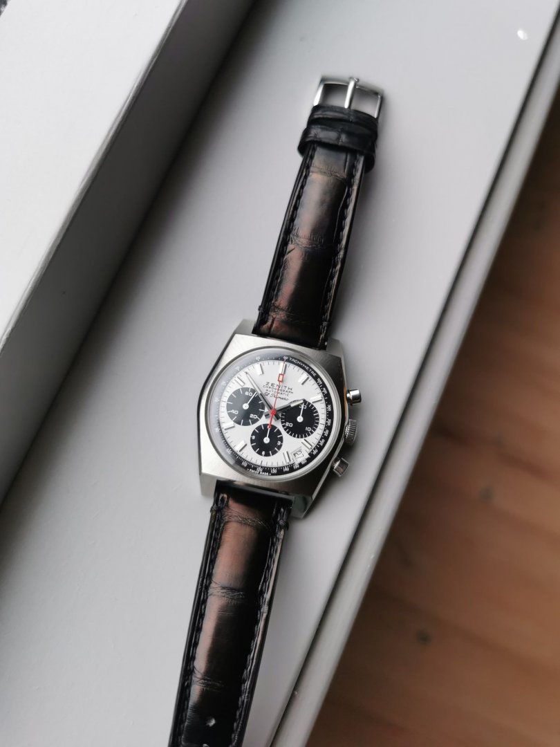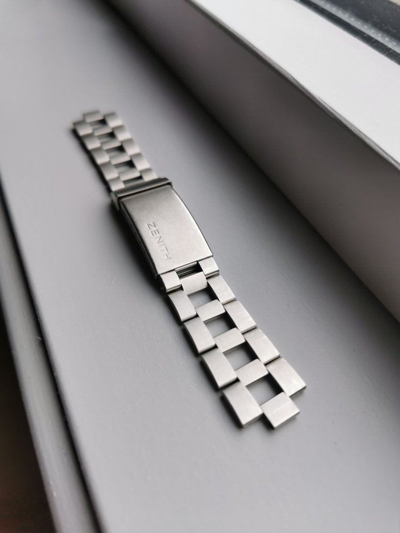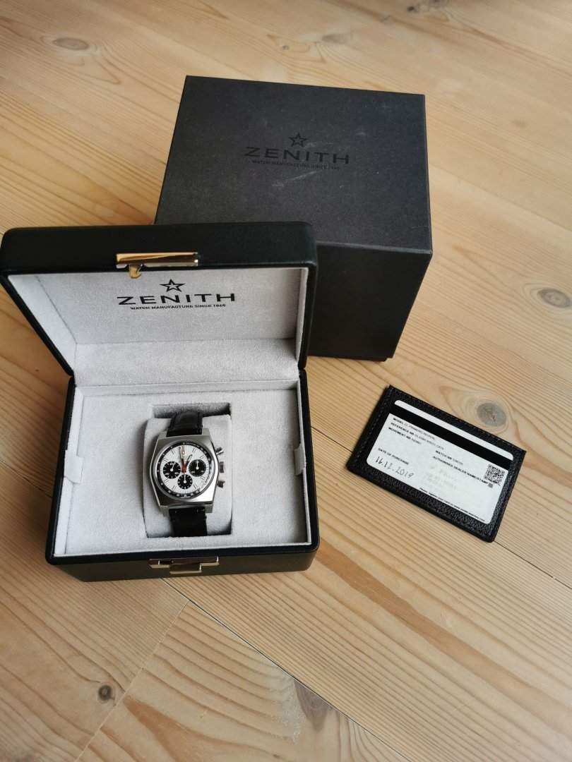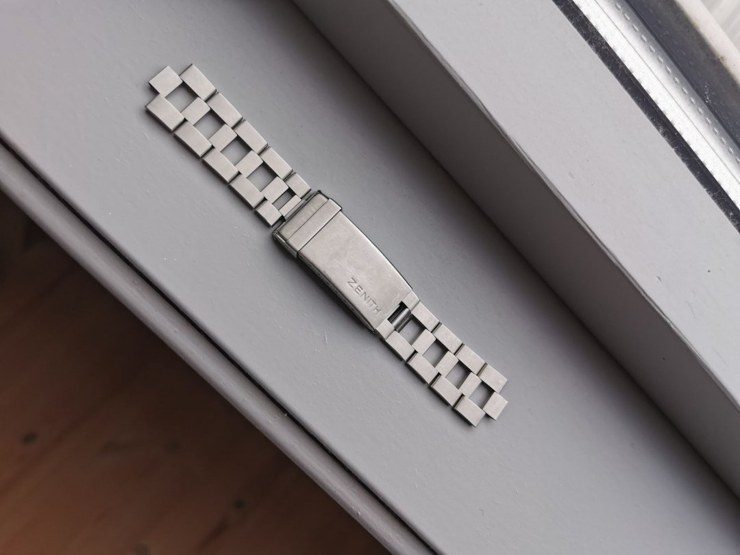 37mm men bærer noe større på grunn av formen. El Primero 400 urverk. Kommer med original croco reim med stiftespenne og Ladder bracelet med foldespenne. Kjøpt hos Protid Haugesund i 2019 av forrige eier, kjøpt av meg i 2021.