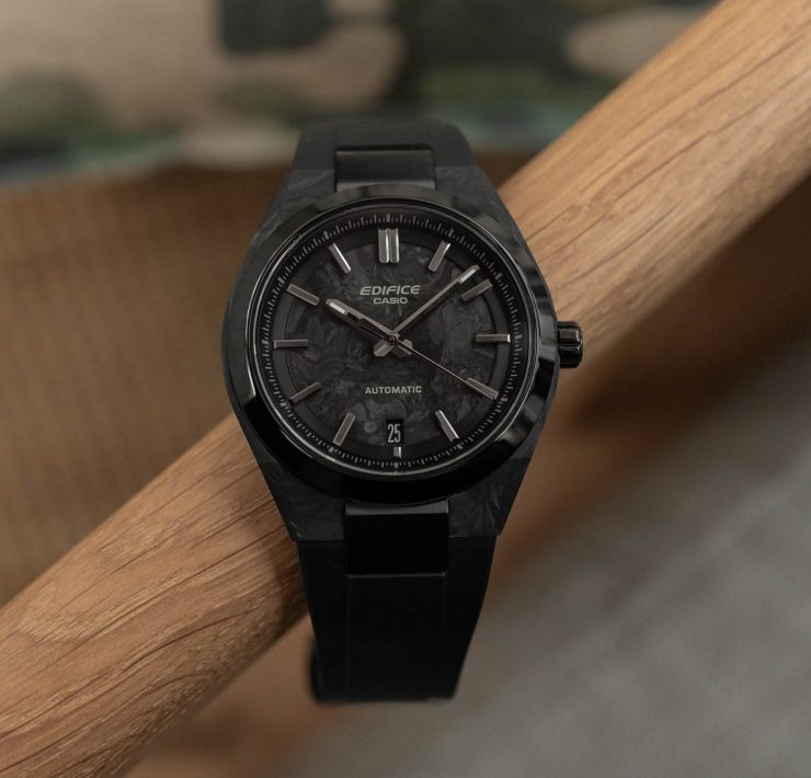 Med mindre plass til rådighet er dato-komplikasjonen valgt bort til fordel for et renere uttrykk. Tallskiven kommer med teksturert lysebrun eller svart finish. Sistnevnte er utsmykket med 12 lab-dyrkede diamanter, som gir varianten et elegant og luksuriøst uttrykk.