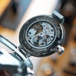 På innsiden tikker et selvtrekkende Vaucher kaliber 5401 («SSG9»), som byr på vakker finish og en et spennende design med mikrorotor i Tungsten. Vaucher – som tidligere var en del av Parmigiani Fleurier – tilbyr flere av sine urverk til eksterne kunder, men jobber i alle hovedsak med langt mer eksklusive klienter enn Swatch Groups ETA. På en kundeliste bestående av bl.a. Richard Mille og Chopard, er Sjöö Sandström foreløpig i godt selskap.