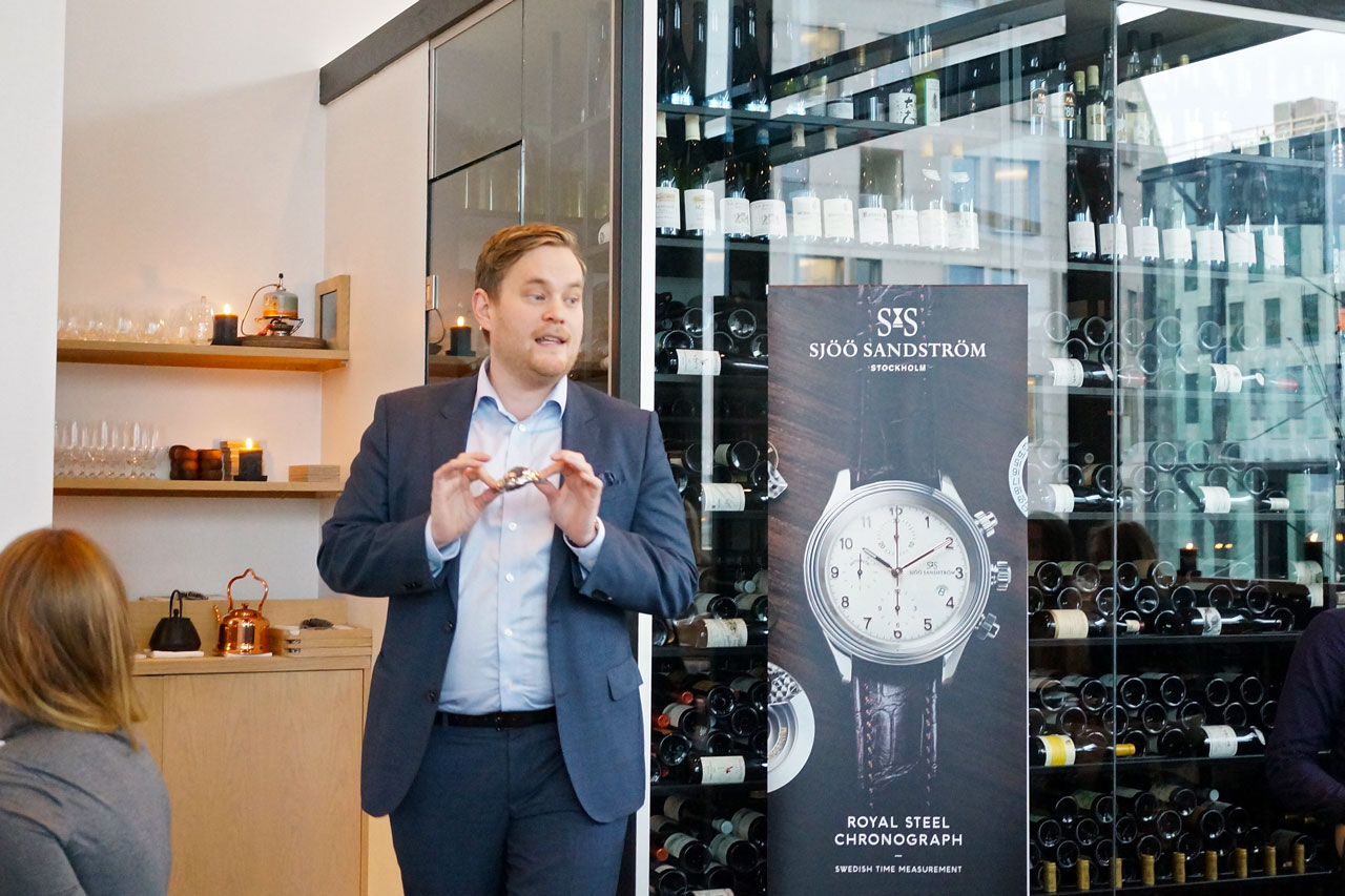Med foreløpig kun én forhandler i Norge, benyttet Sjöö Sandström også anledningen til å vise frem flere ur fra sin kolleksjon. Chronolink Worldtimer UTC fra 1997 omtales ofte som merkets store gjennombrudd, og modellen kombinerte et klassisk mekanisk urverk med analog tidsvisning, med en skjult quartz-basert multifunksjonsmodul som ble utviklet i samarbeid med den svenske forsvarsprodusenten Bofors.