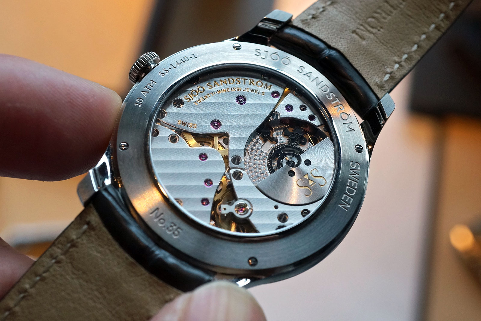 På innsiden tikker et selvtrekkende Vaucher kaliber 5401 («SSG9»), som byr på vakker finish og en et spennende design med mikrorotor i Tungsten. Vaucher – som tidligere var en del av Parmigiani Fleurier – tilbyr flere av sine urverk til eksterne kunder, men jobber i alle hovedsak med langt mer eksklusive klienter enn Swatch Groups ETA. På en kundeliste bestående av bl.a. Richard Mille og Chopard, er Sjöö Sandström foreløpig i godt selskap.