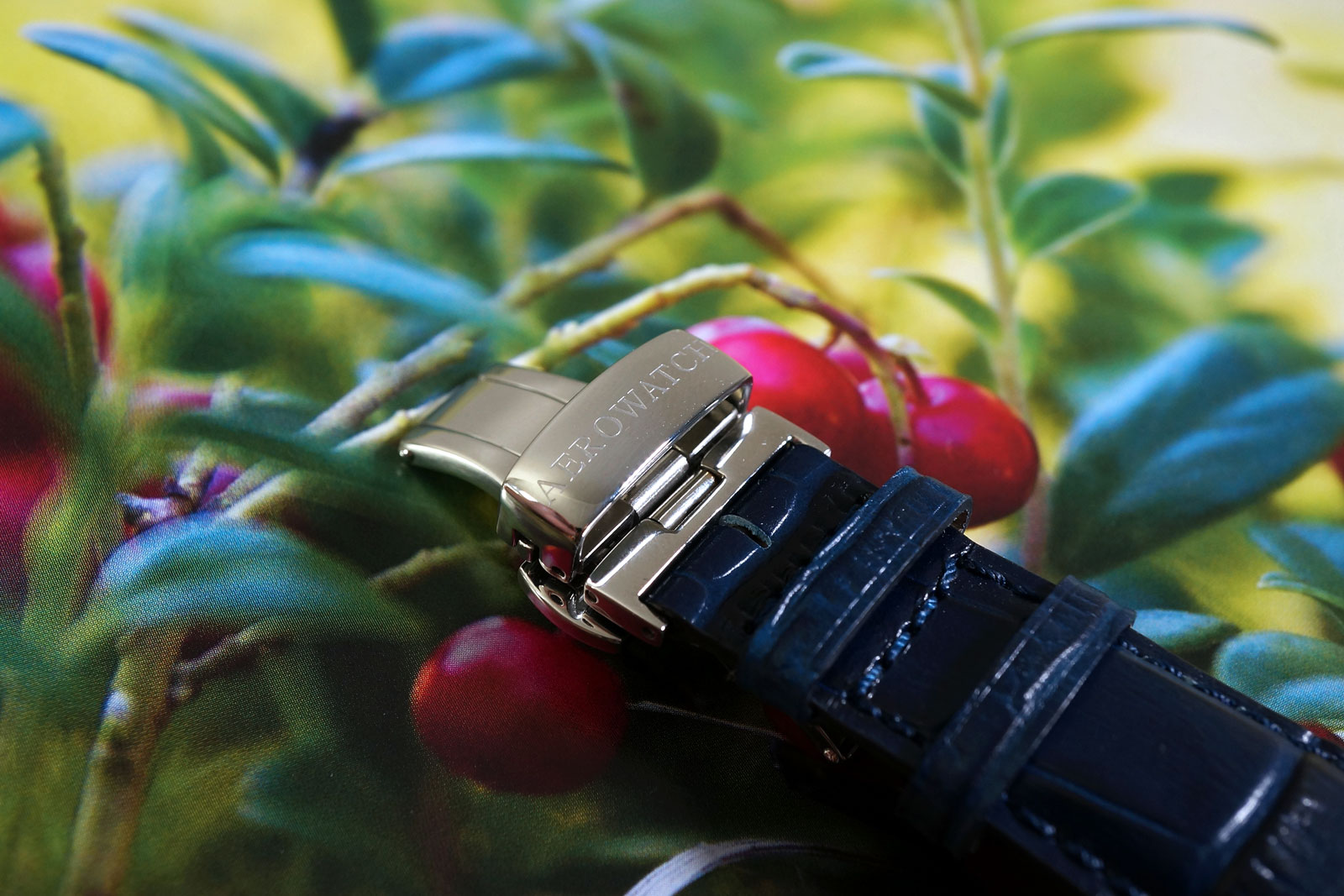 Komfortmessig bærer uret godt, og remmen i skinn (sannsynligvis kalveskinn) er slik den bør være i denne prisklassen – langt i fra den verste, men naturligvis ikke på nivå med de man ofte finner på ur med dobbelt så stor prislapp og høyere. Videre har Aerowatch kostet på seg en dobbel foldespenne med gravert logo, noe som undertegnede gir et stort pluss i margen.