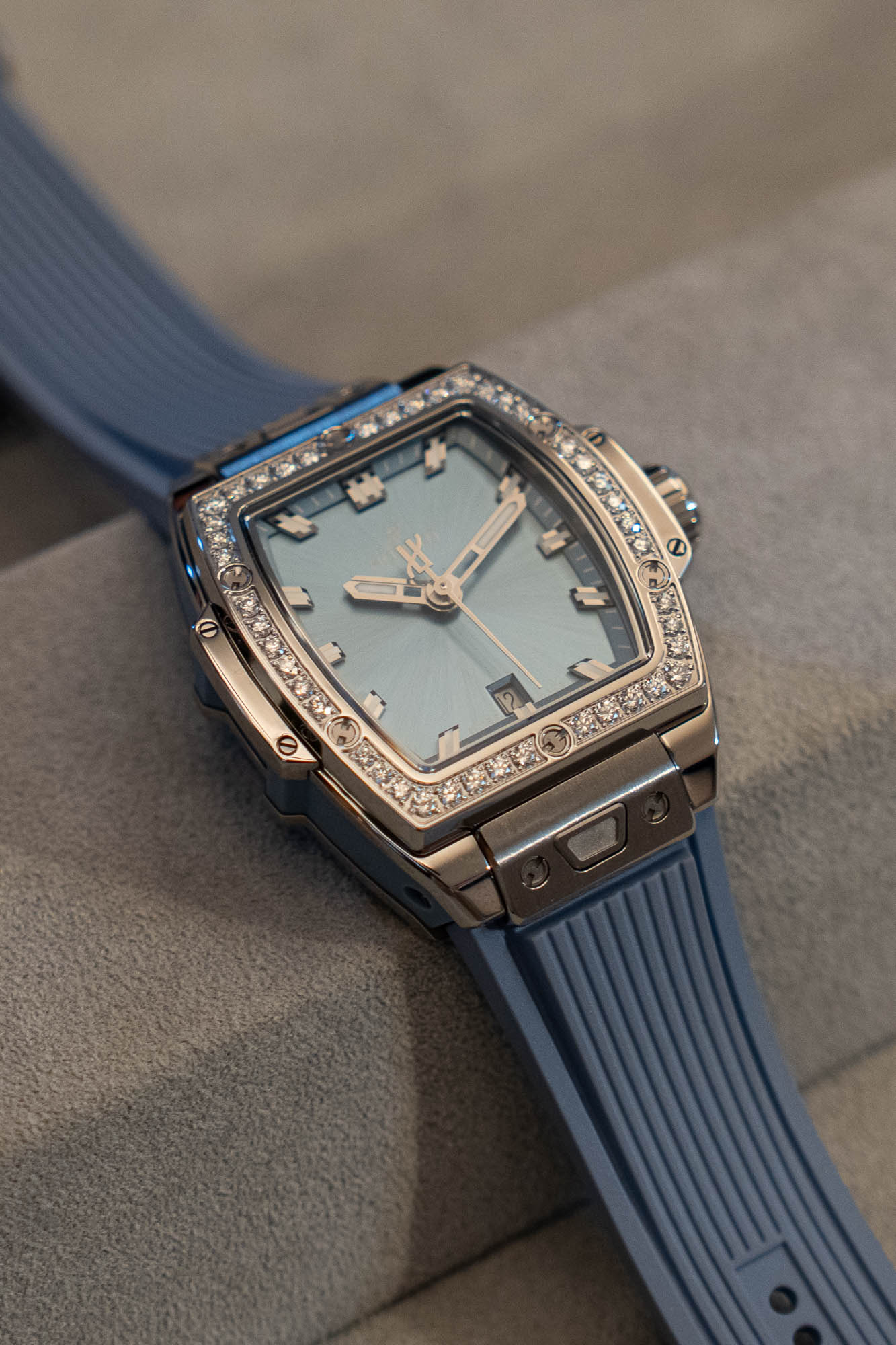 Til sammenligning er nok Spirit of Big Bang Titanium Coal Blue mer aktuell for kjøpere her hjemme. Faktisk trakk Hublots utsendte frem Spirit of Big Bang som særskilt populær i det norske markedet. Den lyseblå tallskiven har et spesielt karbonfiber-aktig mønster, som også har funnet veien til de nye søskenmodellen Big Bang Original Unico Titanium Coal Blue, samt to dameversjoner i stål med diamanter.