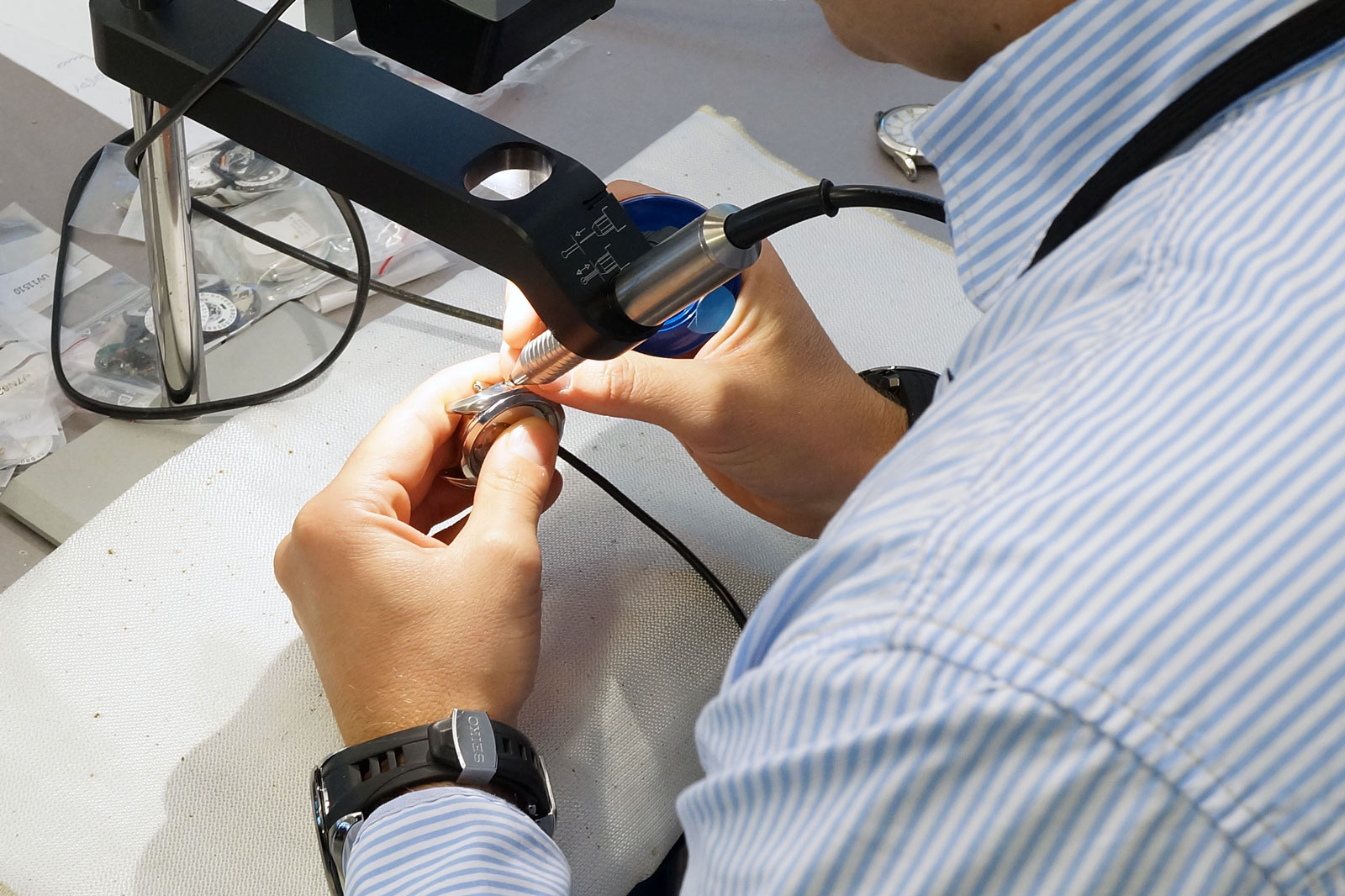 Under vårt besøk ble det foretatt flere demonstrasjoner som blant annet omfattet deres muligheter innenfor gravering og sveising. Sistnevnte er spesielt interessant, for ryktene i urmiljøet vil ha det til at Optura er en av få urmakerverksteder her til lands som har mulighet til å korrigere store utvendige skader på ur ved sveising.