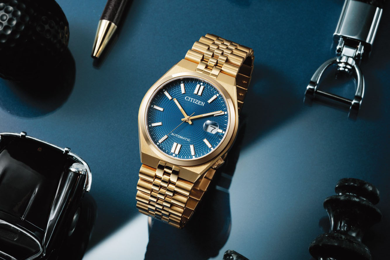 Tsuyosa 60 Automatic følger mye av den samme oppskriften, men har en sterkere smak av retro. Kolleksjonen har i flere år begeistret alt fra nybegynnere til mangeårige klokkeentusiaster. Med et gullfarget ytre, ny lenke og en slående blå tallskive har Citizen skapt en av de mest oppsiktsvekkende Tsuyosa-modellene til nå. Og under glasset i baklokket tikker et oppgradert automatisk urverk fra Miyota med hele 60 timers gangreserve.